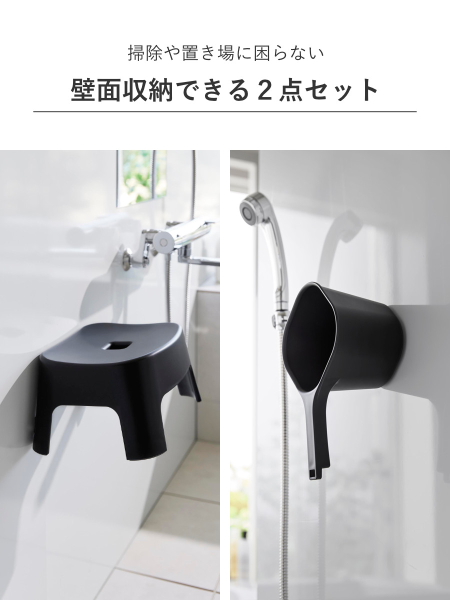 浴室の壁面にマグネットでピタっとくっつく風呂イスと手おけの2点セットです。浴室の床に直接置かないので、ヌメリや水垢が付くのを防ぎ、清潔に収納できてお掃除もラクラクです。シンプルなデザインで、お風呂のどこに置いても馴染みます。