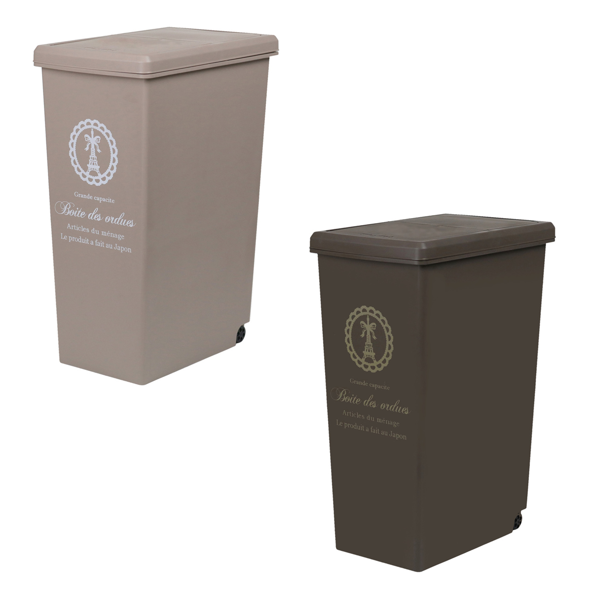 ゴミ箱 スライドペール 45L 色違いセット ( ごみ箱 45リットル ダストボックス スリム 分別 キッチン スライド スライド式 蓋つき 大容量 プラスチック ペール 角型 縦型 フタ付き おしゃれ ) 【ベージュ×ブラウン】