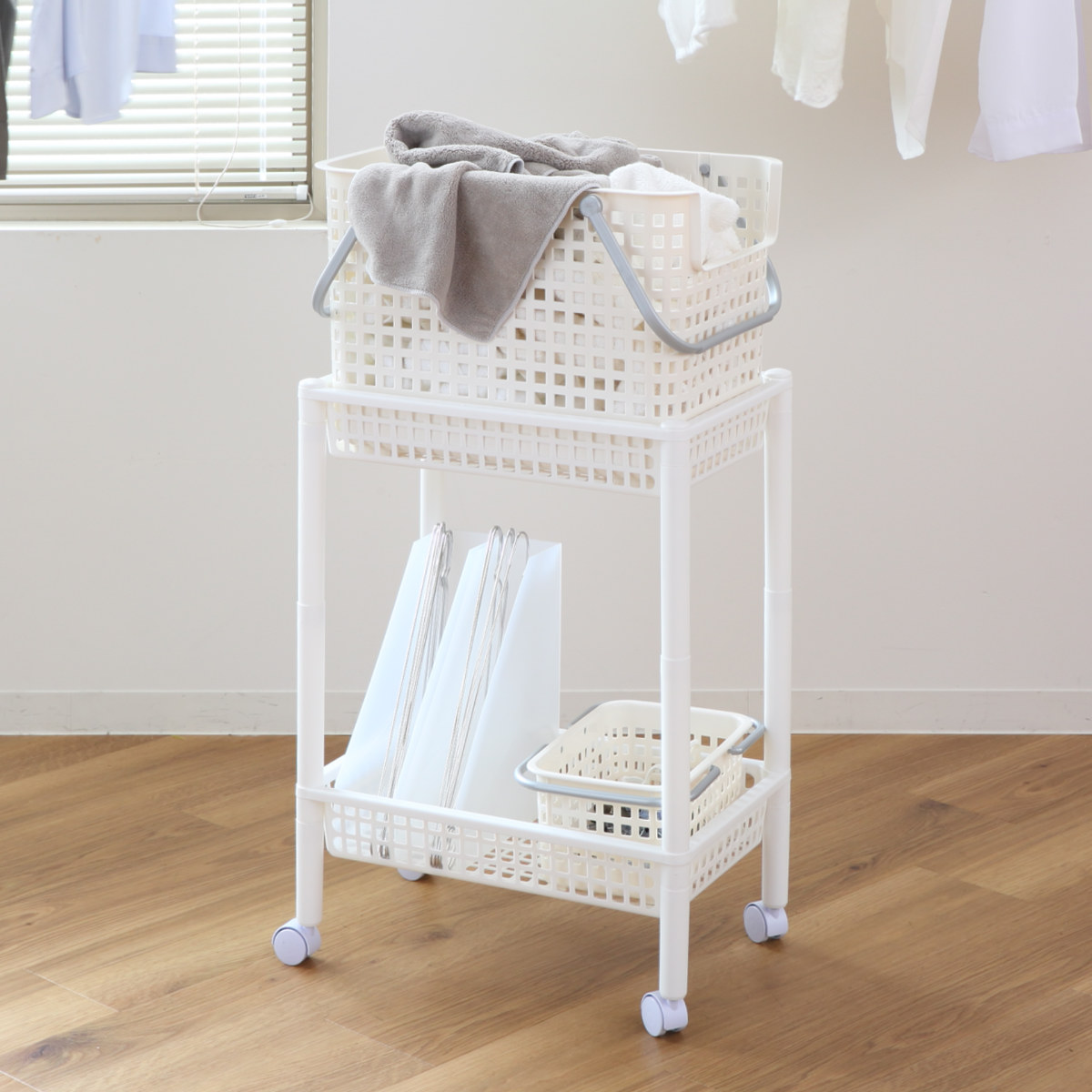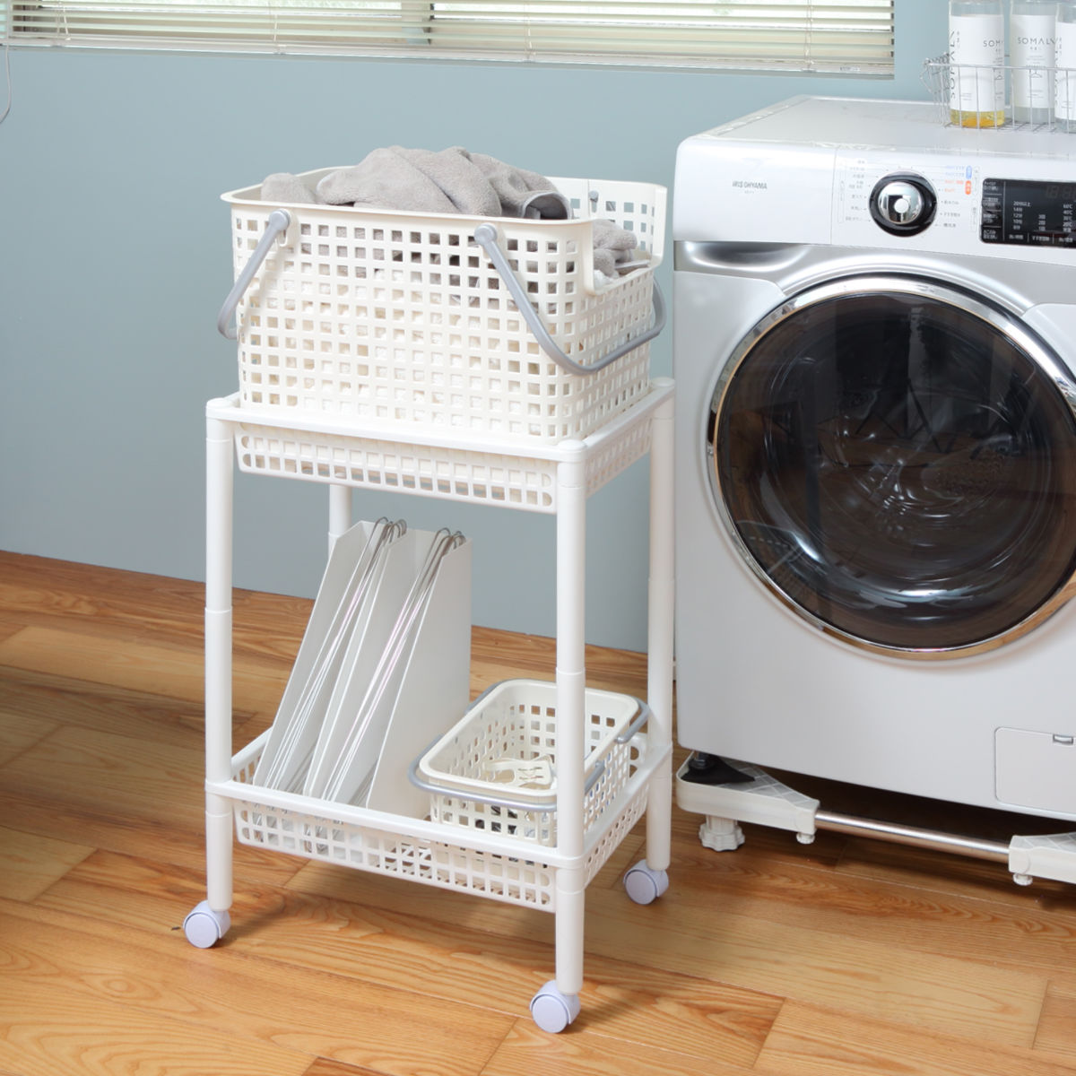 上段にバスケットを配置することで、立ったまま洗濯物を取り出すことができ、干すときはもちろん、洗濯機からの取り出しもスムーズに行えます。腰をかがめる動作が減り、毎日の洗濯がより快適になります。