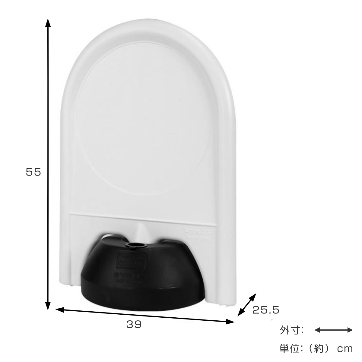 設置したい場所に置いてポリ台に水を入れるだけで簡単に設置ができます。プラスチック製なので軽く、移動が女性でも楽々可能です。雨に濡れても錆びないので、場所を選ばず設置できます。さらに安定させたい時は密度が高く安定感がある砂を入れてお使いいただけます。
