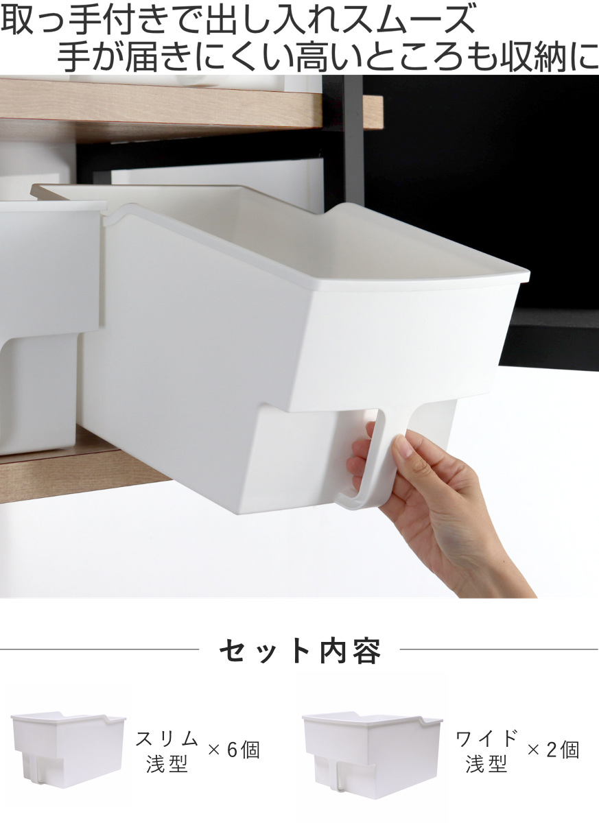 吊戸棚ボックス スリム浅型6個 ワイド浅型2個 ( 幅18.5cm 幅24cm キッチンストッカー 取っ手付き 吊戸棚 ケース ボックス 吊り戸棚ストッカー キッチン収納ケース 戸棚収納 収納BOX 吊り戸棚 キッチン 収納 整理ケース )