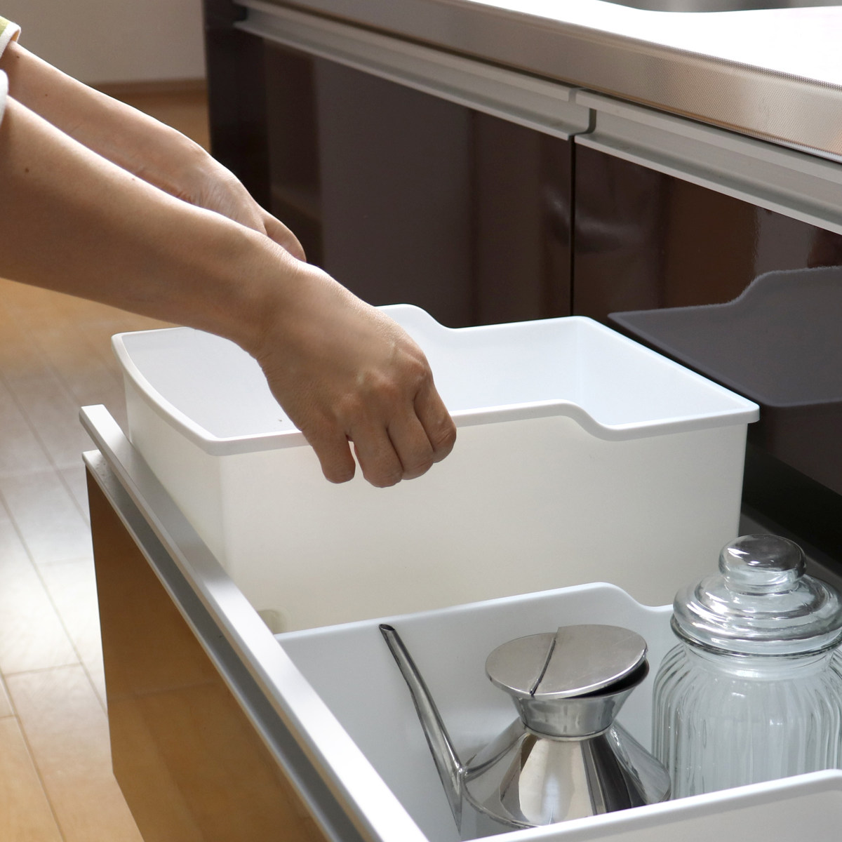 吊戸棚のことを考えて作られた収納ボックス