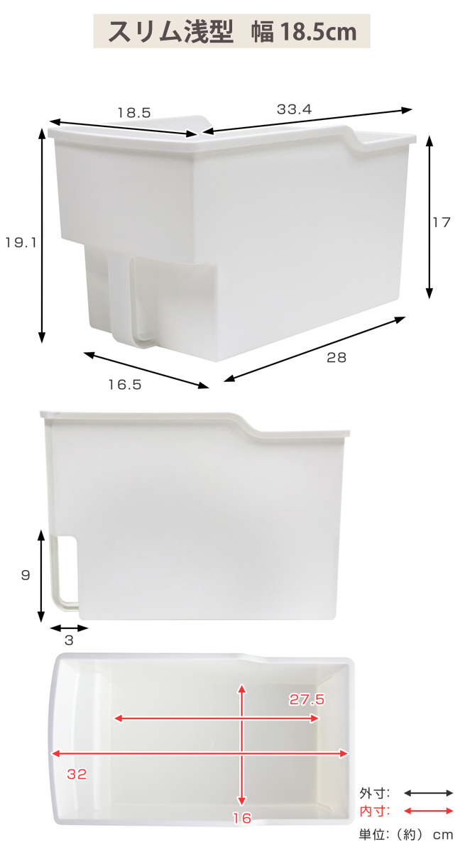 | サイズ | 【スリム浅型】 約 幅18.5×奥行33.4×高さ19.1(cm) 【ワイド浅型】 約 幅24×奥行33.4×高さ19.1(cm) |