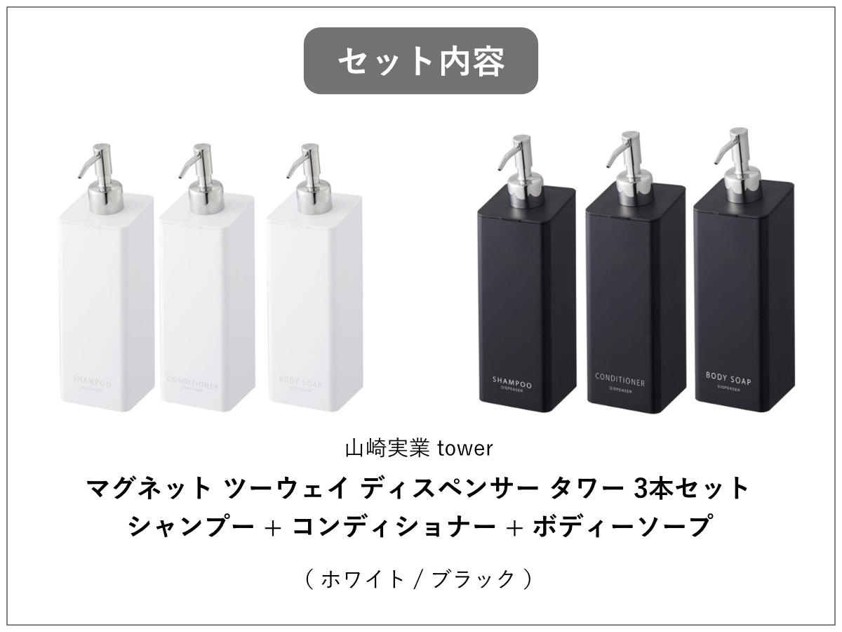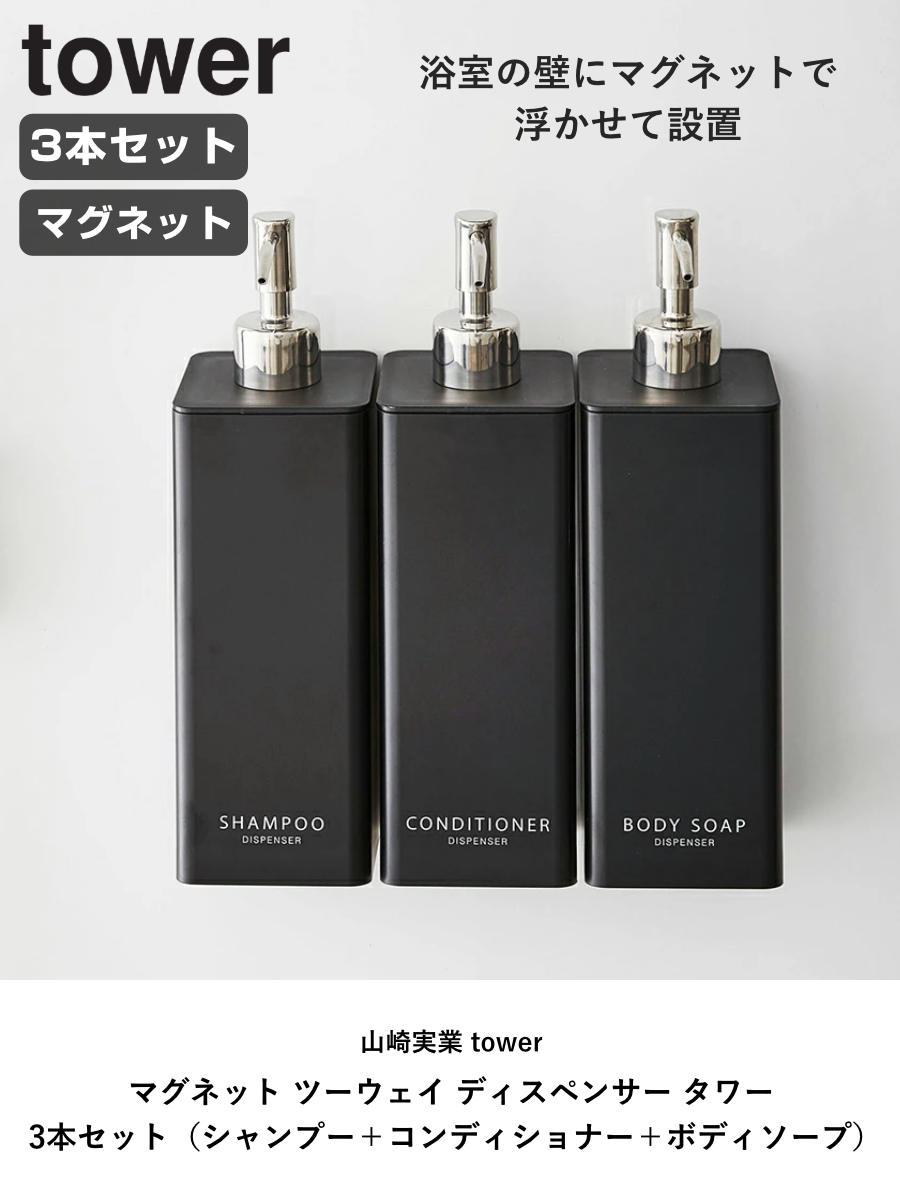 山崎実業 tower マグネット ツーウェイ ディスペンサー タワー 3本セット シャンプー コンディショナー ボディーソープ ( 4903208042581 タワーシリーズ 詰替え用 ボトル ) 【ホワイト】