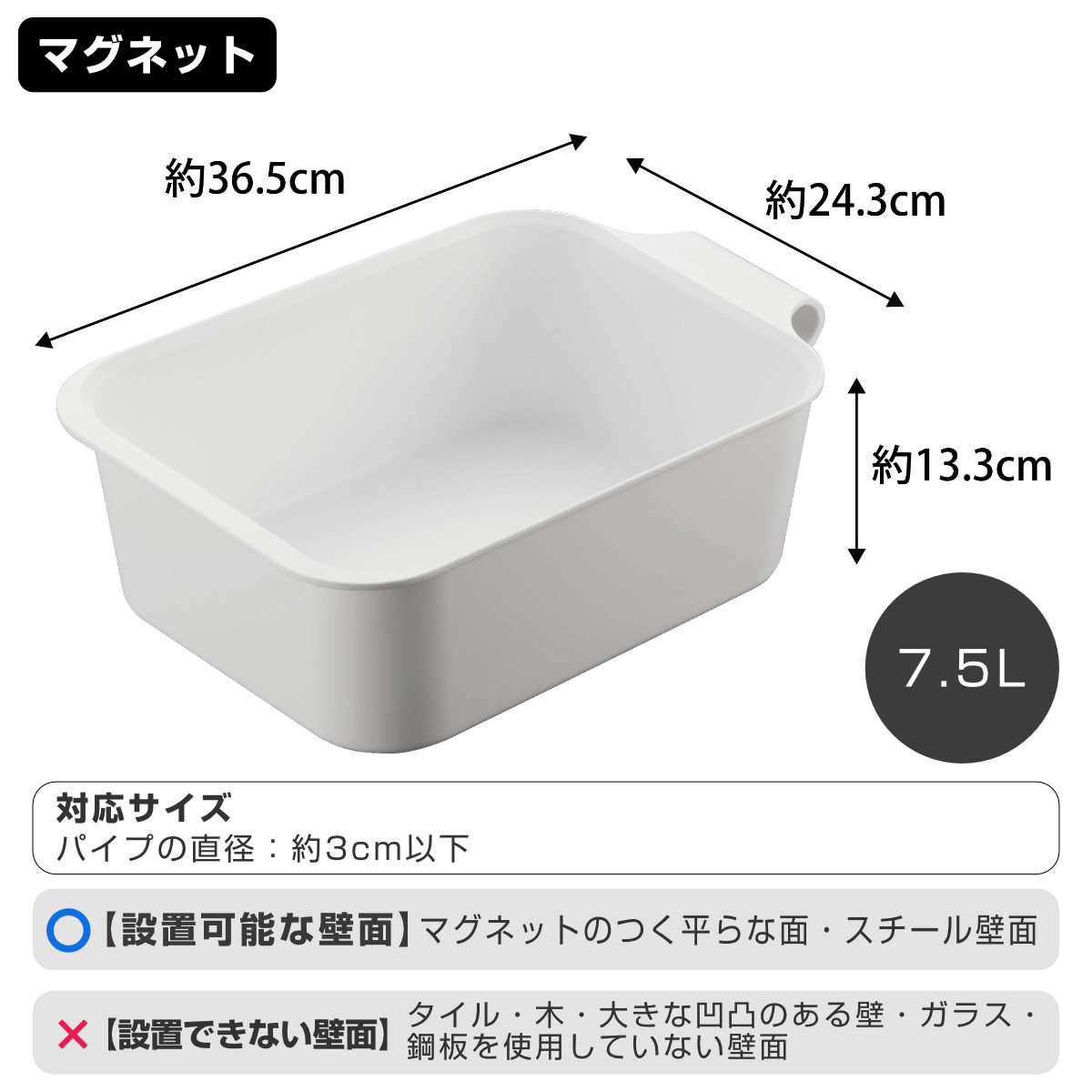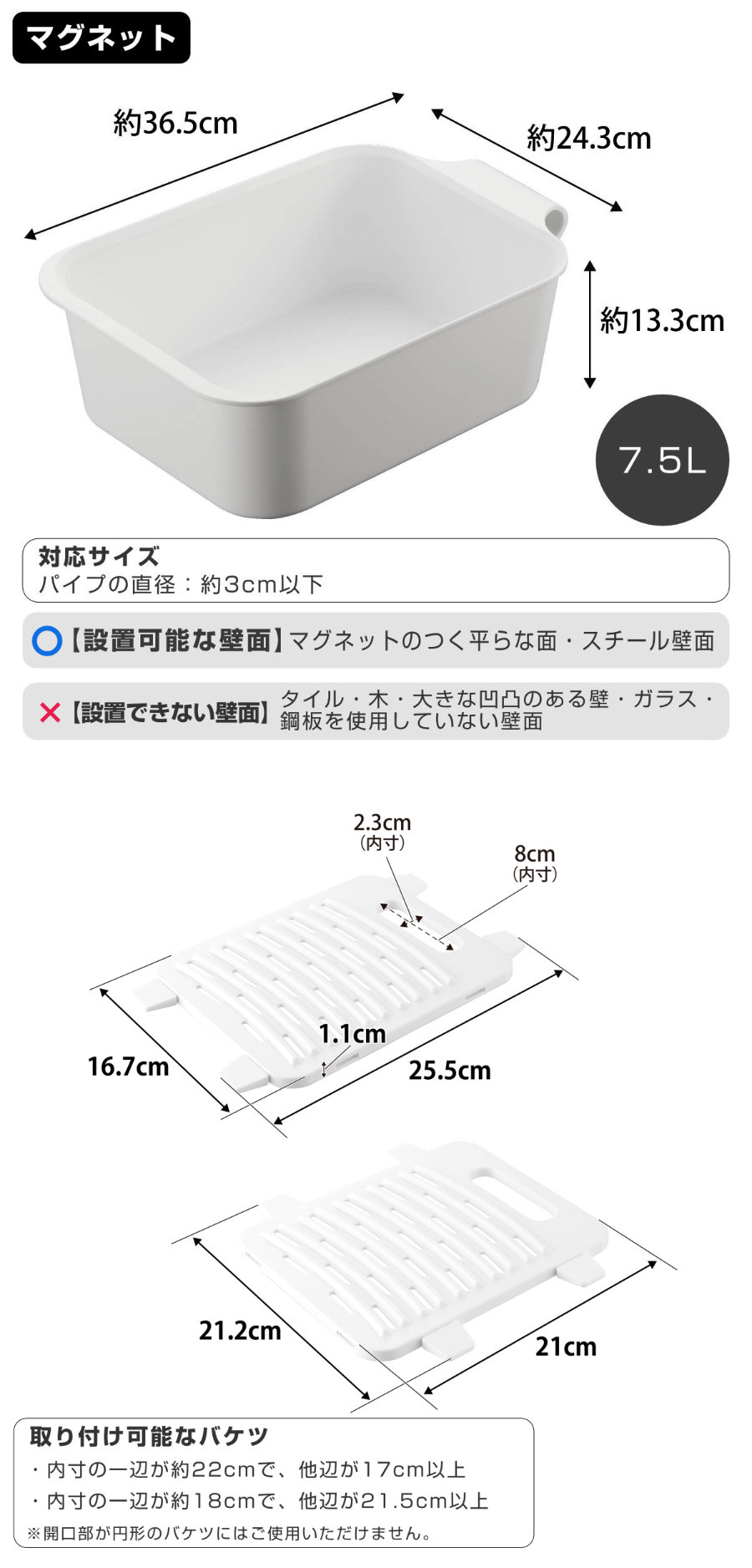 | 容量 | 【マグネット&引っ掛けバケツ】 7.5L |