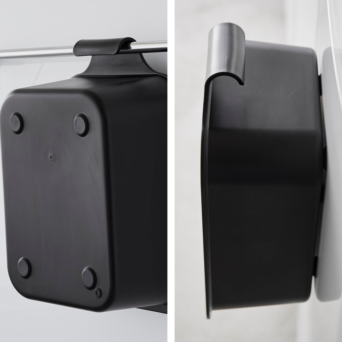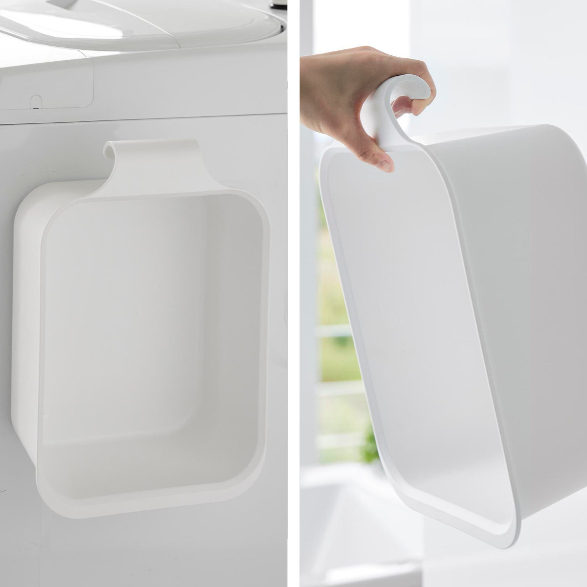 マグネットで洗濯機や浴室の壁面にピタッとくっつくバケツと、浴室のバーや扉にお手持ちのフックで引っ掛けられる浸け置き板のセットです。バケツは引っ掛けて収納することも可能なので、使わない時も省スペースでスッキリ。収納の幅が広がります。
