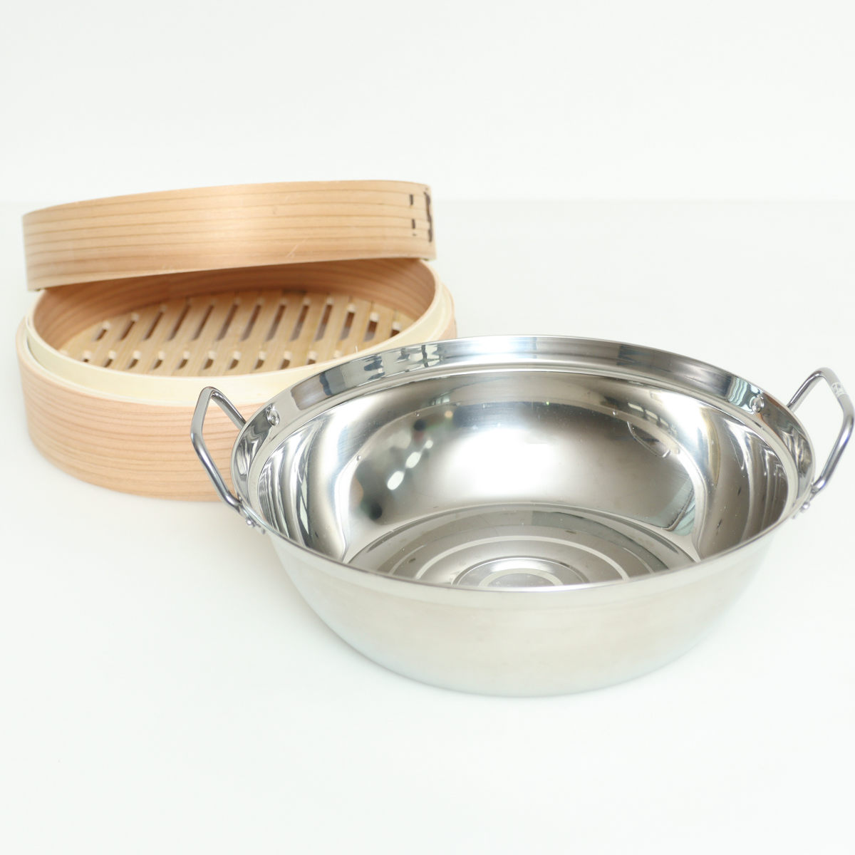 せいろ+鍋セット よせ鍋 26cm せいろ 27cm ( 蒸籠 セイロ 蒸篭 蒸し かご 27 センチ 天然木 天然竹 中華セイロ 中華蒸篭 調理器具 両手なべ 鍋料理 ステンレス 蒸篭せいろ 中華蒸籠 点心 飲茶 小籠包 焼売 肉まん シュウマイ )
