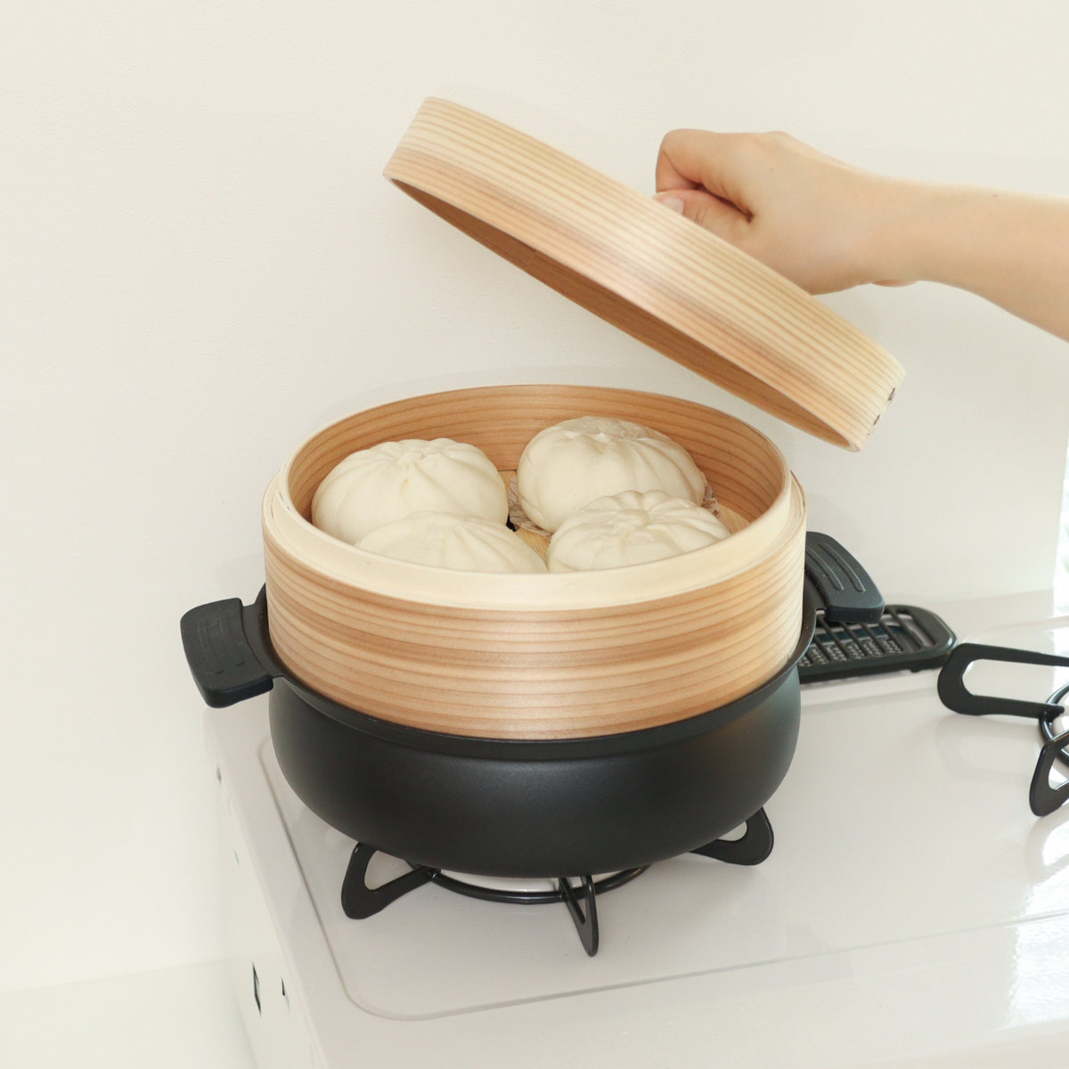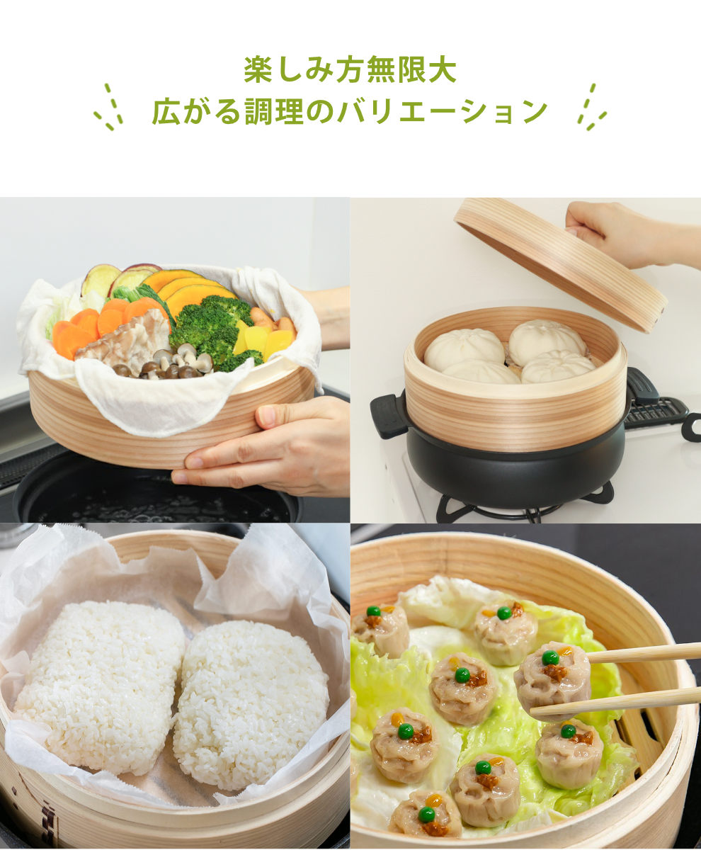 お野菜やシュウマイなどを蒸して、そのまま食卓に出せば、いつもの食事がちょっとした外食気分に。普段のお料理を、さりげなくワンランクアップしてくれます。