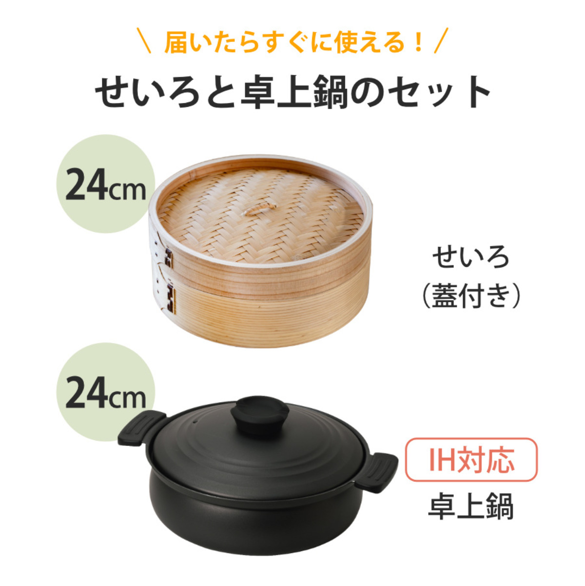 ![]() せいろ+鍋セット 18cm | ![]() せいろ+鍋セット 24cm 【▲このページの商品】 |