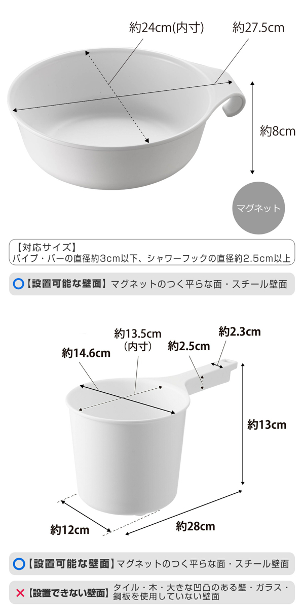 | 備考 | 【手おけ】 取り付け可能な壁面:マグネットがつく平らな面・スチール壁面 |