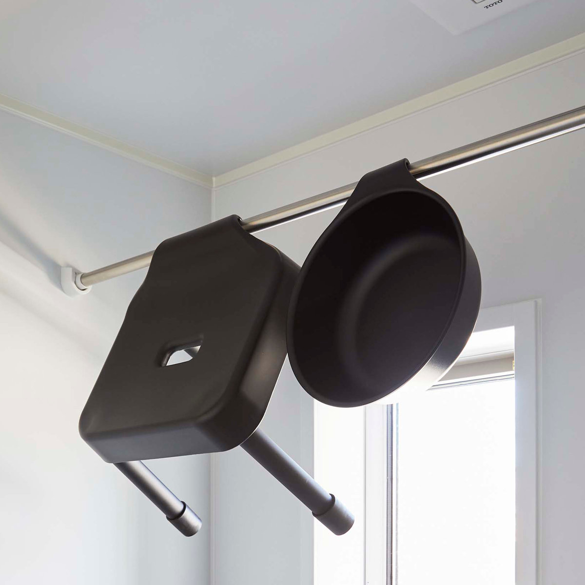 シャワーフックやタオルバーに引っ掛けて水切り・収納が可能です。その他にも浴室扉のハンドルや浴室物干し竿にもお使いいただけます。