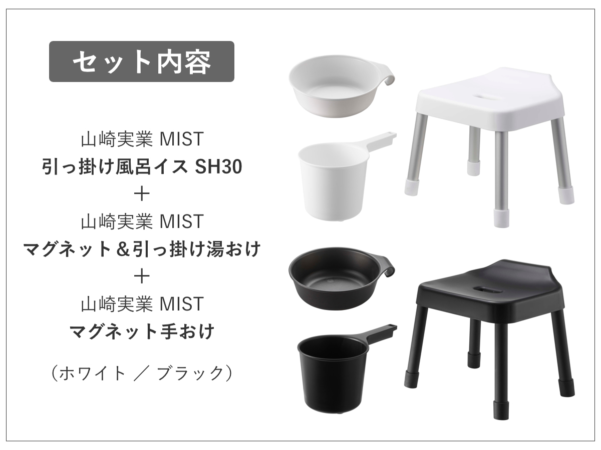 ![]() MIST 引っ掛け風呂イス SH30 | ![]() MIST マグネット&引っ掛け湯おけ | ![]() MIST マグネット手おけ |