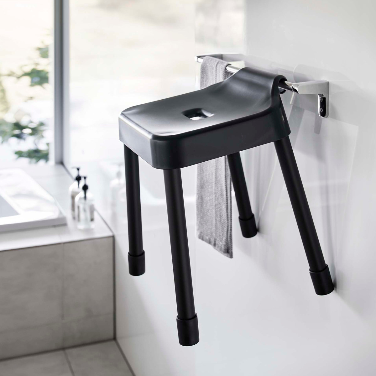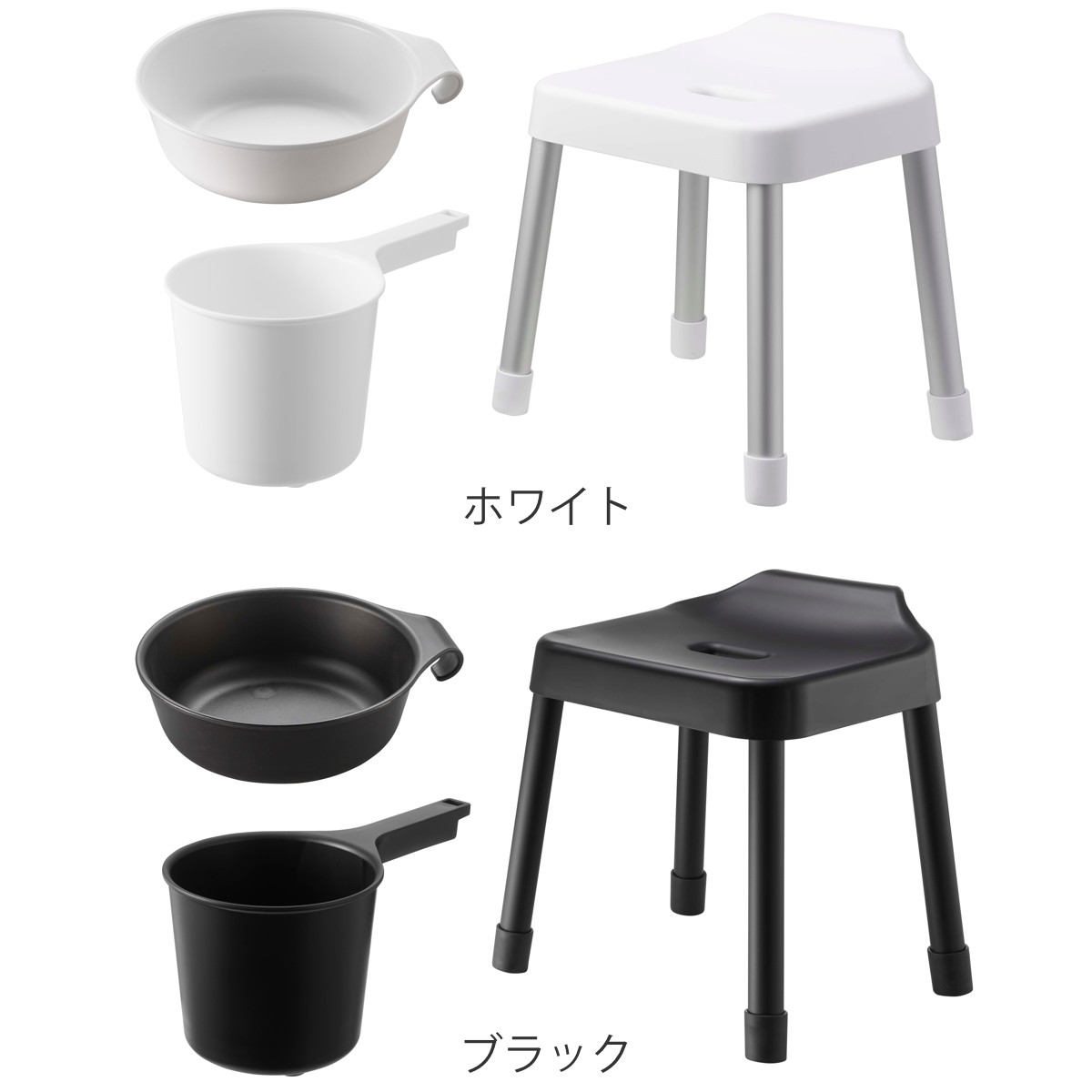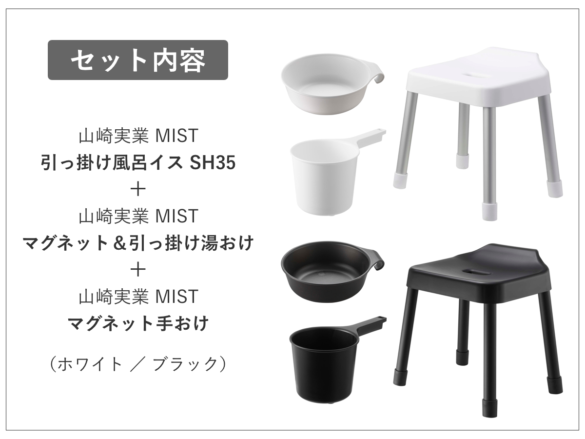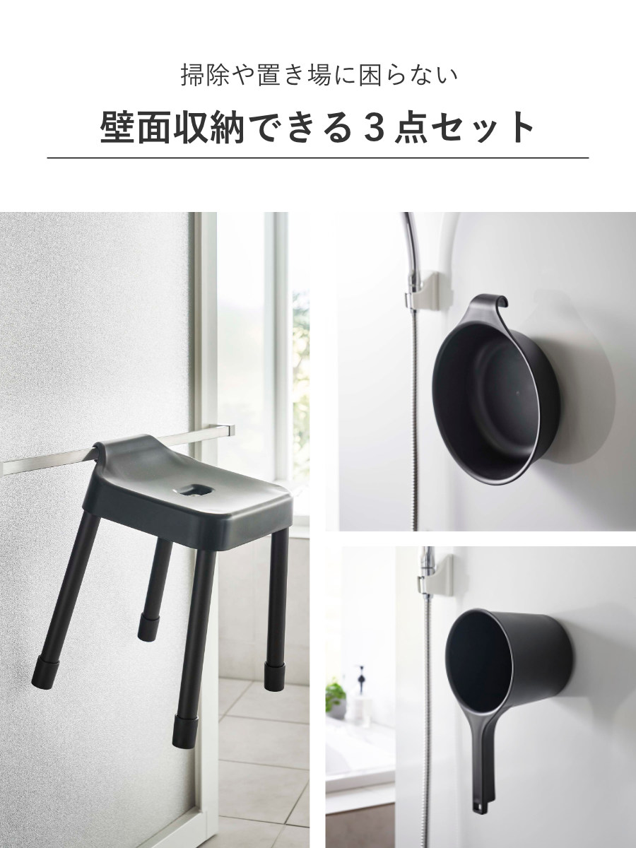 山崎実業 MIST 引っ掛け風呂イス SH35+マグネット&引っ掛け湯おけ+マグネット手おけ 3点セット ミスト ( 4903208073097 バスチェア 座面高35cm 湯桶 洗面器 手桶 壁面 浮かせる ホワイト ブラック ) 【ブラック】