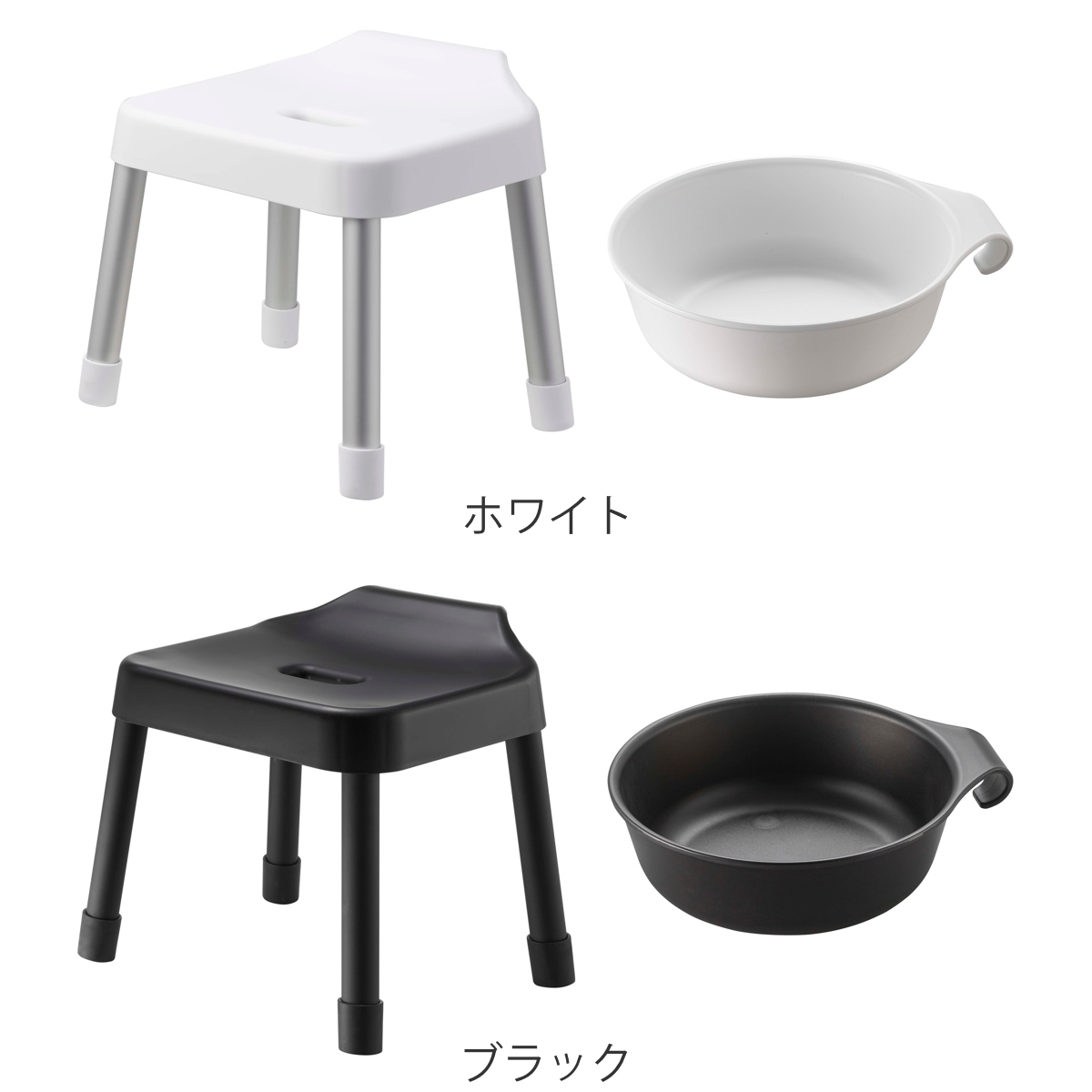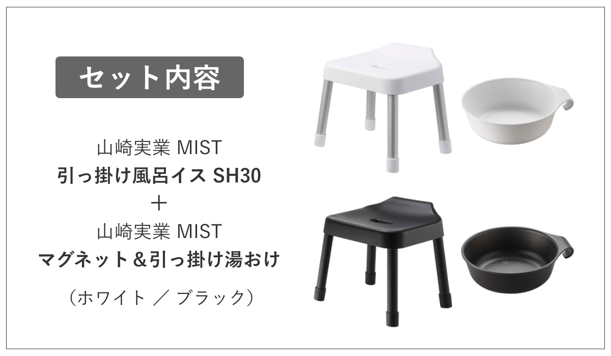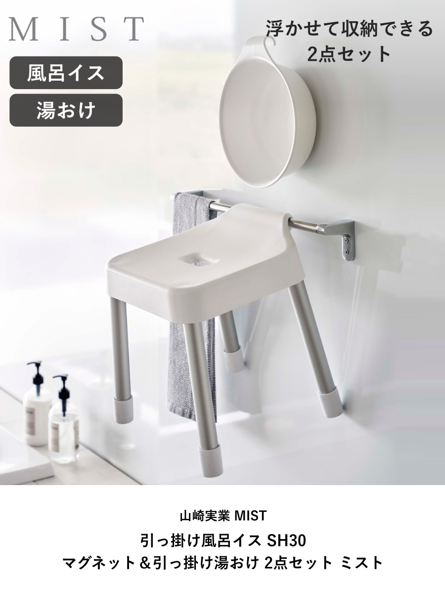 山崎実業 MIST 引っ掛け風呂イス SH30+マグネット&引っ掛け湯おけ 2点セット ミスト ( 4903208073073 バスチェア 座面高30cm 湯桶 洗面器 手桶 壁面 浮かせる ホワイト ブラック ) 【ホワイト】
