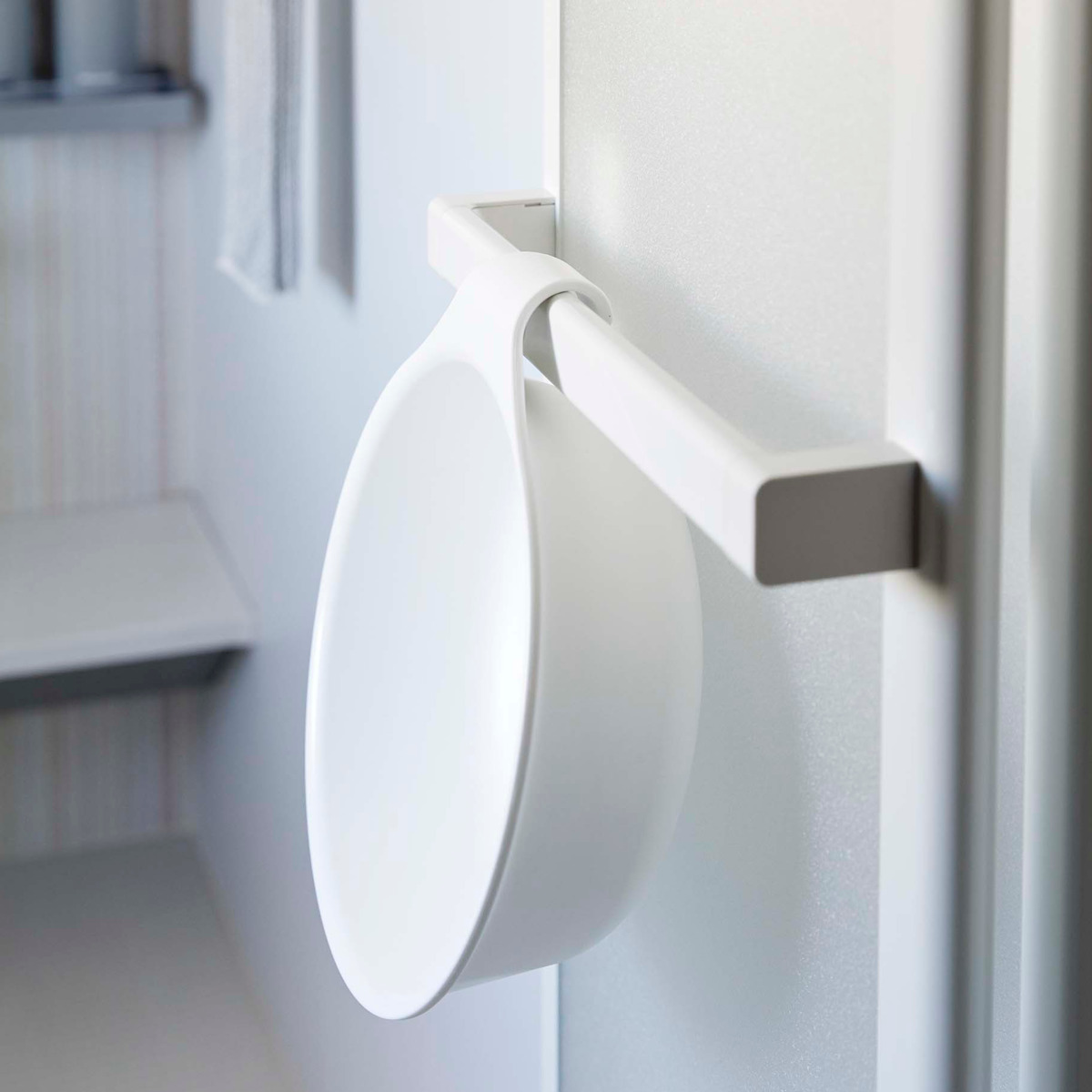 シャワーフックやタオルバーに引っ掛けて水切り・収納が可能です。その他にも浴室扉のハンドルや浴室物干し竿にもお使いいただけます。
