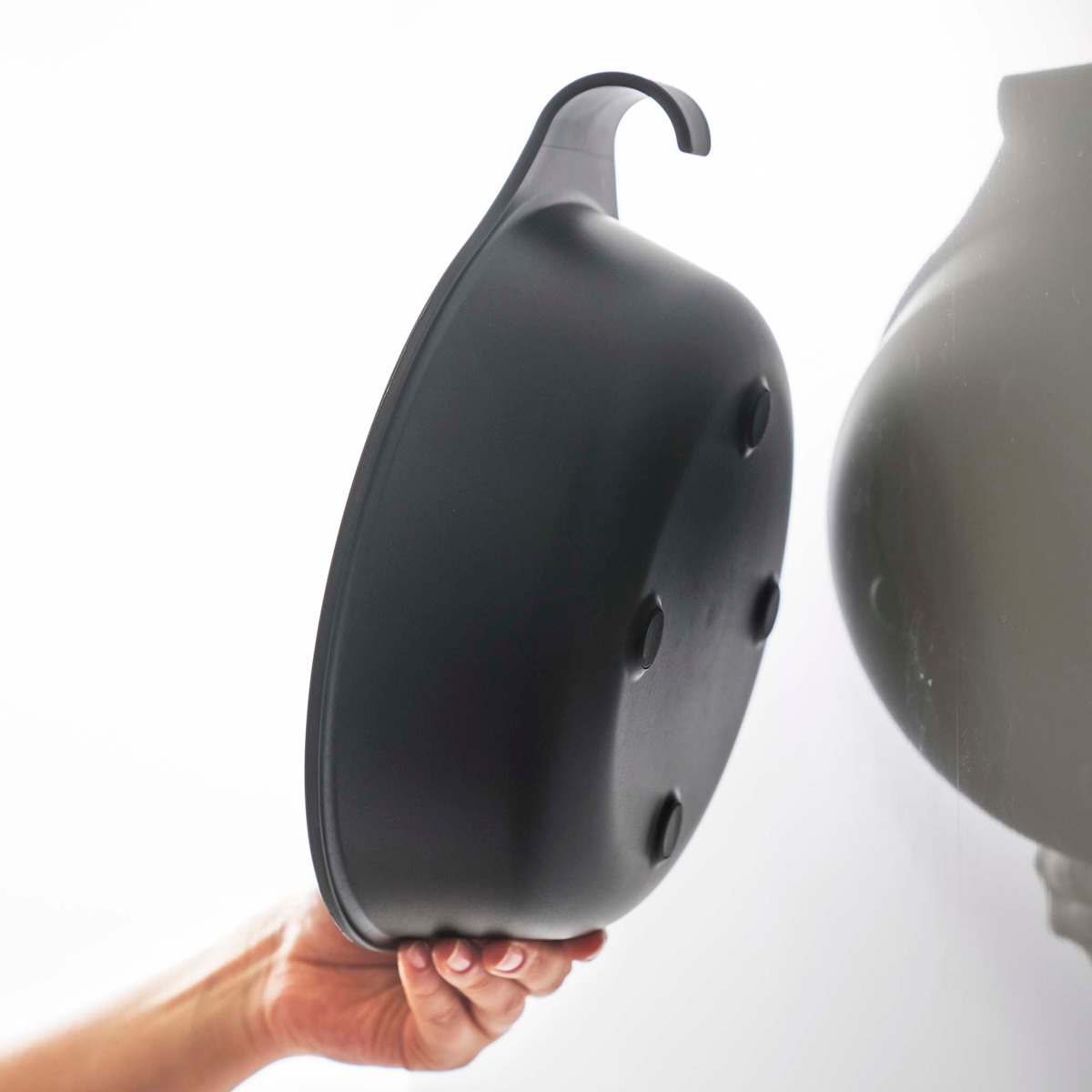 浴室のバーや扉に引っ掛けられる「風呂イス」と、マグネットで浴室の壁面にピタッとくっつく「湯おけ」との2点セットです。浴室の床に直接置かないので、ヌメリや水垢が付くのを防ぎ、清潔に収納できてお掃除もラクラクです。シンプルなデザインで、お風呂のどこに置いても馴染みます。