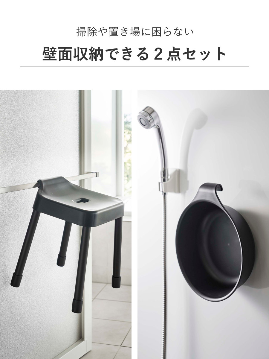 山崎実業 MIST 引っ掛け風呂イス SH35+マグネット&引っ掛け湯おけ 2点セット ミスト ( 4903208073097 バスチェア 座面高35cm 湯桶 洗面器 壁面 浮かせる ホワイト ブラック ) 【ホワイト】
