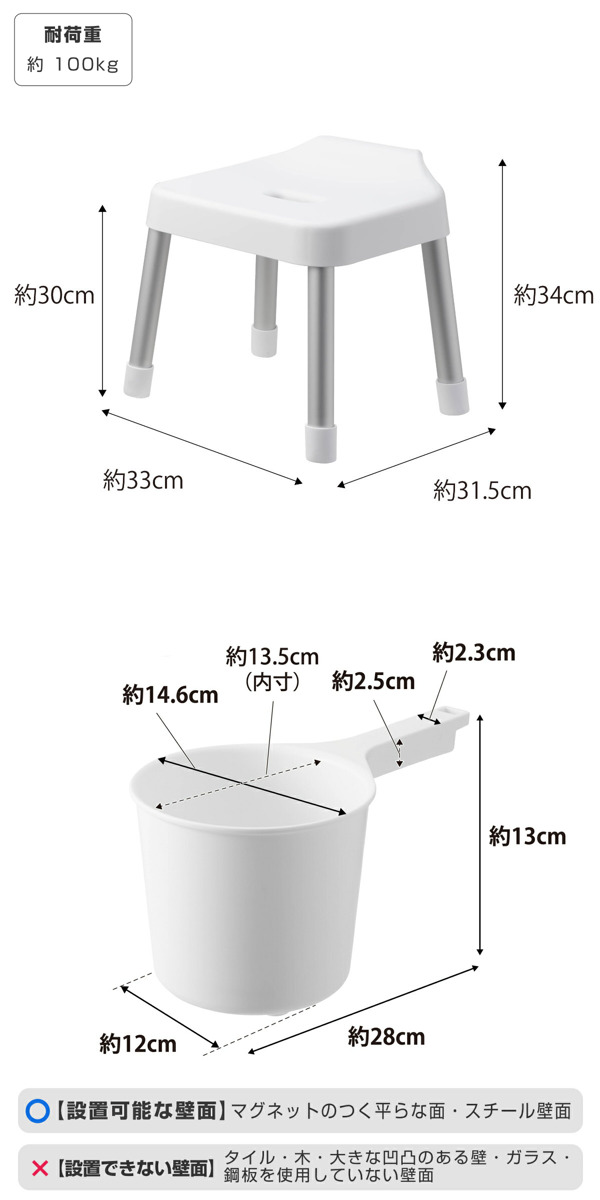 | 備考 | 【手おけ】 取り付け可能な壁面:マグネットがつく平らな面・スチール壁面 |