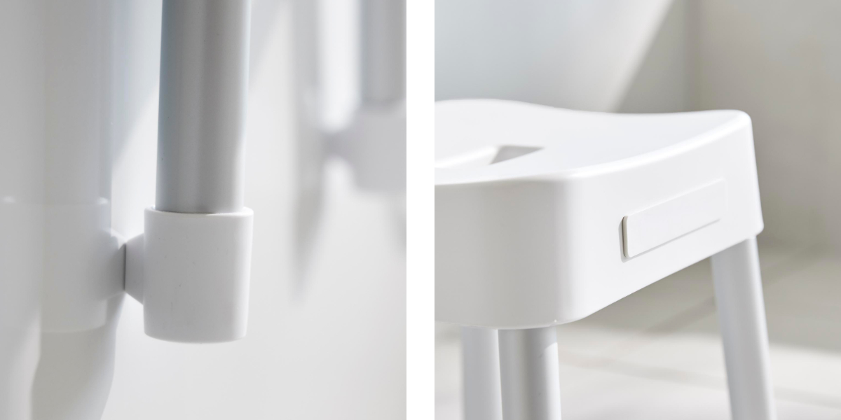 | 引っ掛け収納も可能 マグネットが使えない浴室でも、バスタブの縁に掛ければ直接床に置かずに乾かせるので衛生的です。 | やさしくフィットする座り心地 座面の後方には、体に沿うようなカーブの背もたれが付いているので安定感のある座り心地です。 |