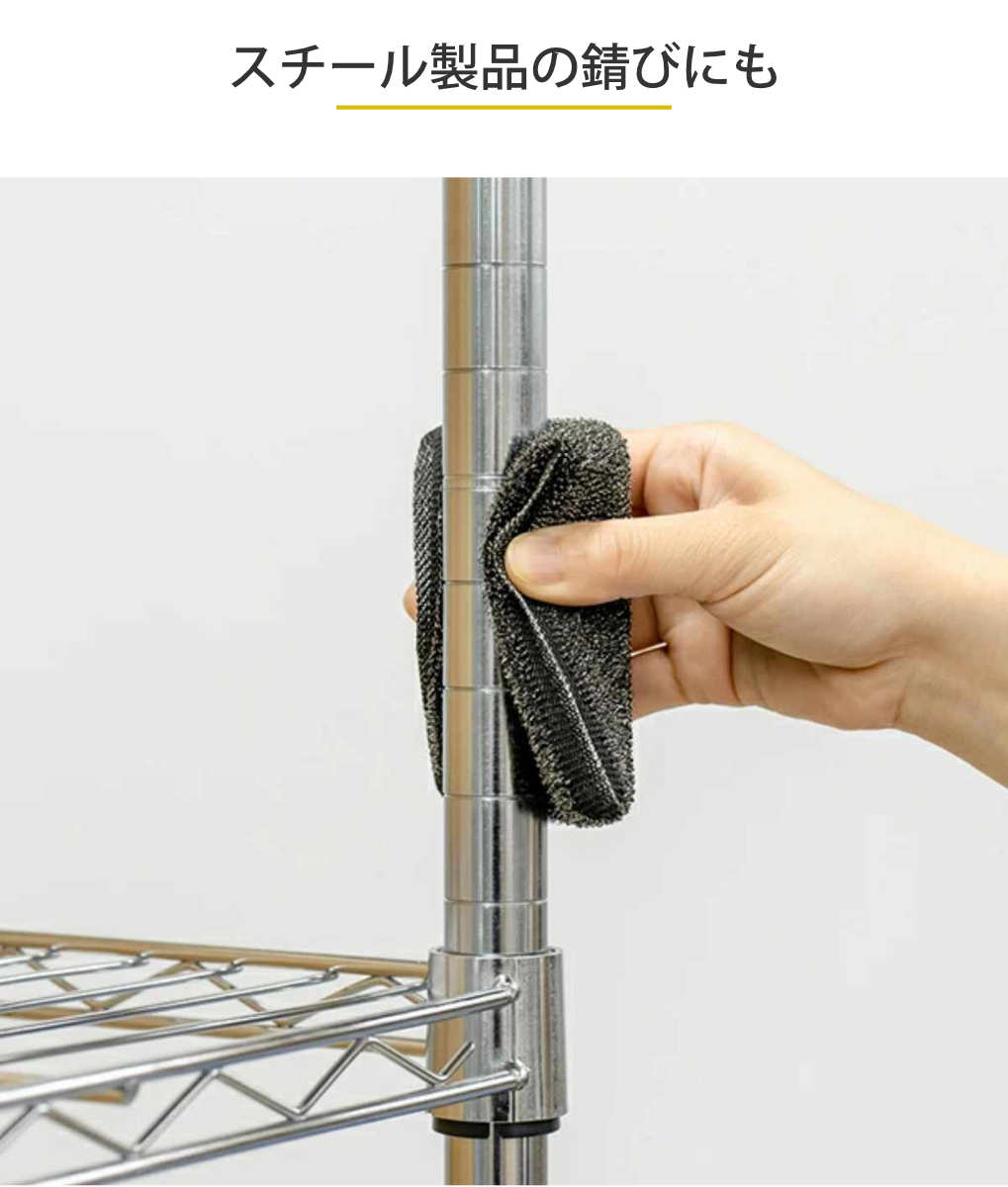 ステンレス繊維を編み込んだ研磨力に優れたスポンジです。スチール製品の家具やコンロの錆びも、擦って落とすことができます。