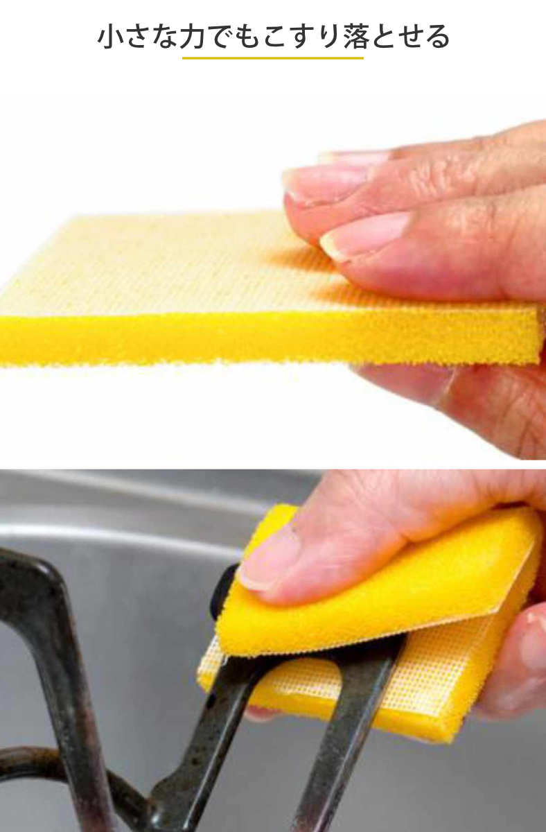 洗剤を使わず水に濡らして擦るだけでコゲ、サビ、水垢などの頑固な汚れを落とします。魚焼きグリルやバーベキュー後の網などの落としにくい焦げも簡単にお手入れできます。