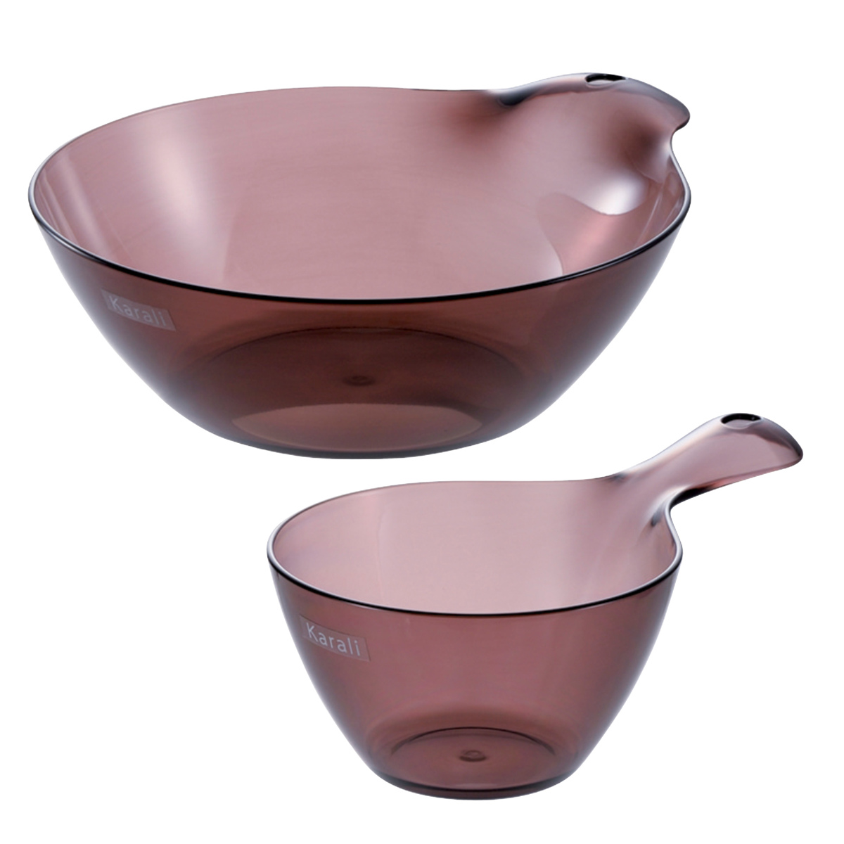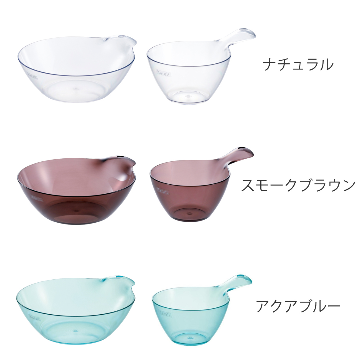 湯桶 手桶 2点セット karali カラリ ( 湯おけ 風呂おけ クリア 洗面器 風呂桶 透明 手おけ ウォッシュボール ハンディボール 速乾 通気性 かびにくい 壁掛け フック 軽い 丈夫 収納 ) 【スモークブラウン】