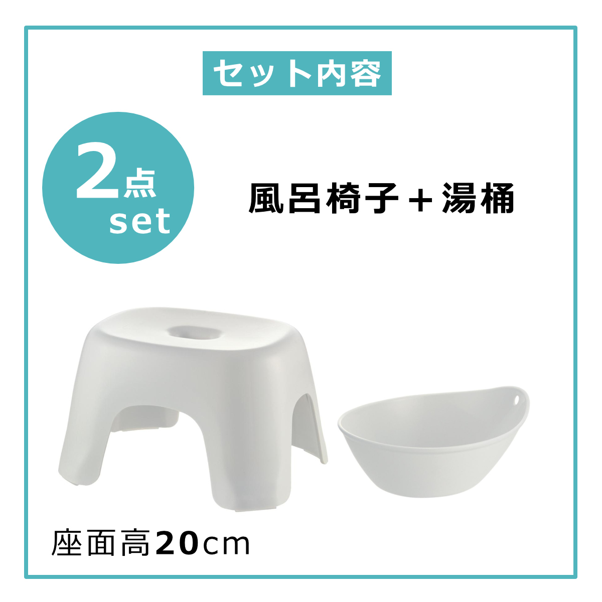 風呂椅子 20cm 湯桶 2点セット ハユール 日本製 抗菌 ( 風呂いす お風呂 腰かけ イス 座面高20 入浴 洗面器 Ag抗菌加工 滑り止め バスチェア バスグッズ 椅子 おしゃれ 風呂用品 国産 防カビ ) 【グレー】