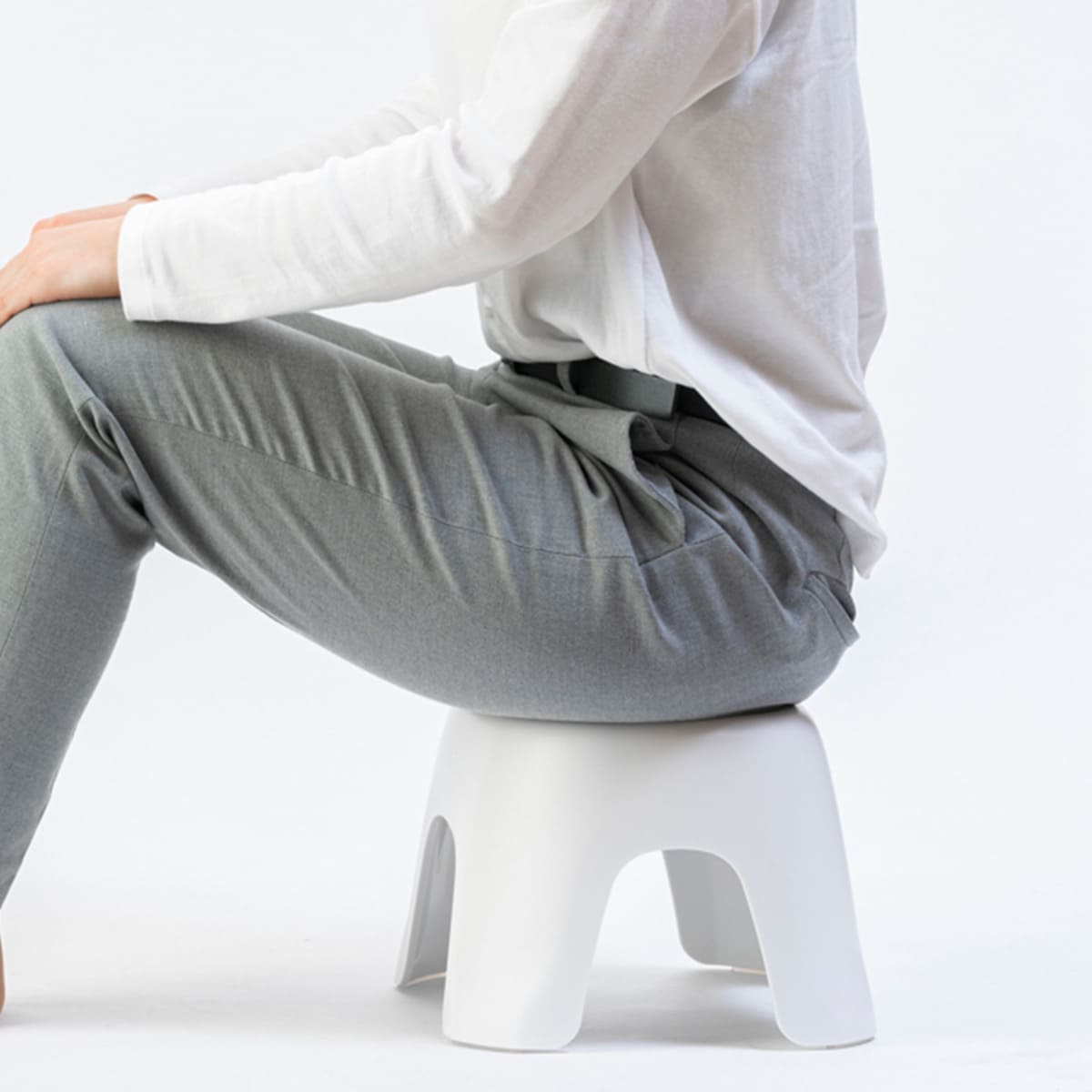 おしりに優しくフィットする安定感のある幅広の座面で、女性はもちろん男性が座ってもしっかりと安定します。さらっとした表面と凸凹の少ない設計で、快適な座り心地とお手入れのしやすさを両立しています。