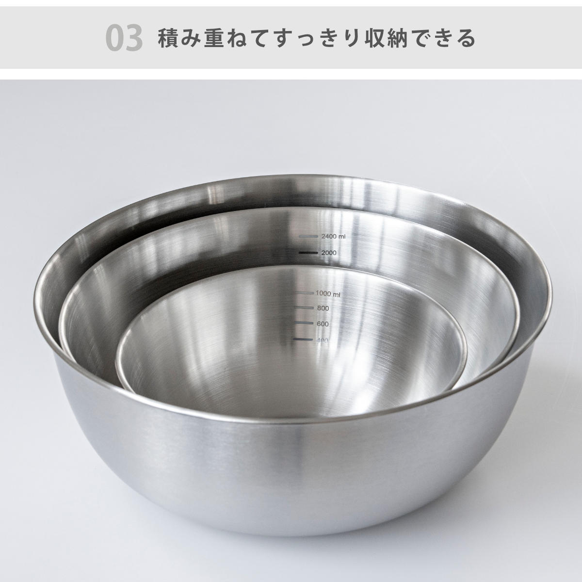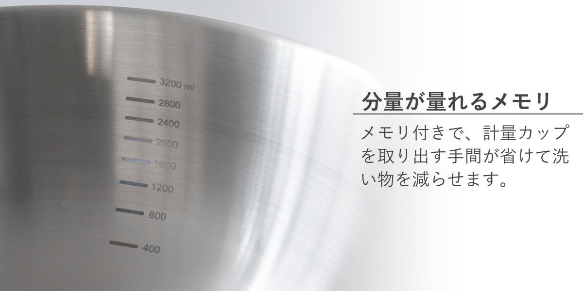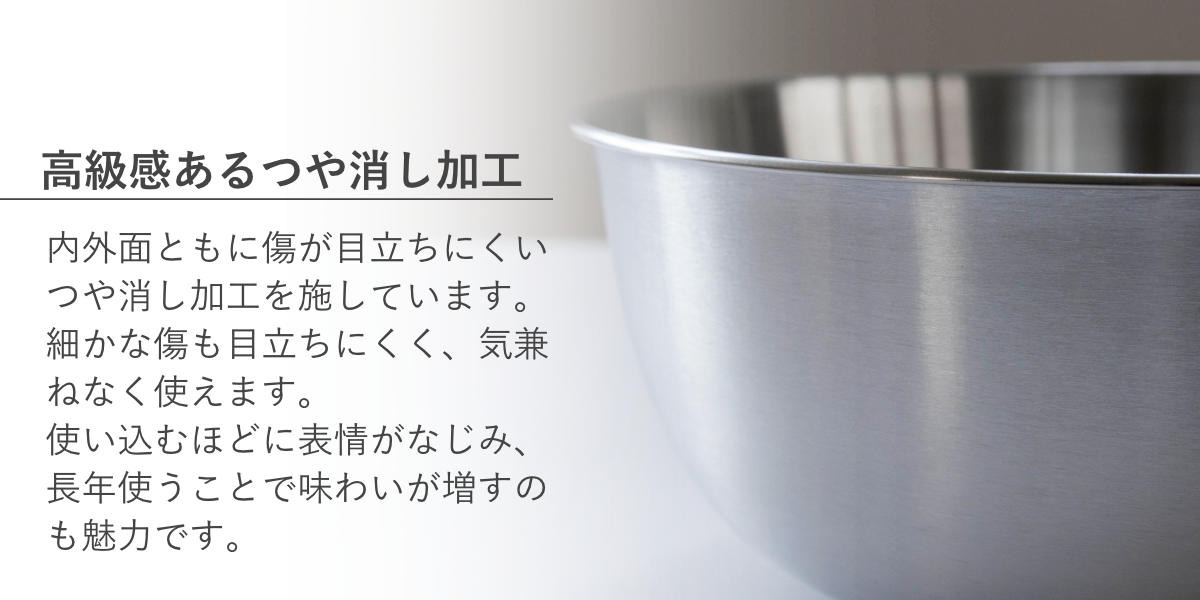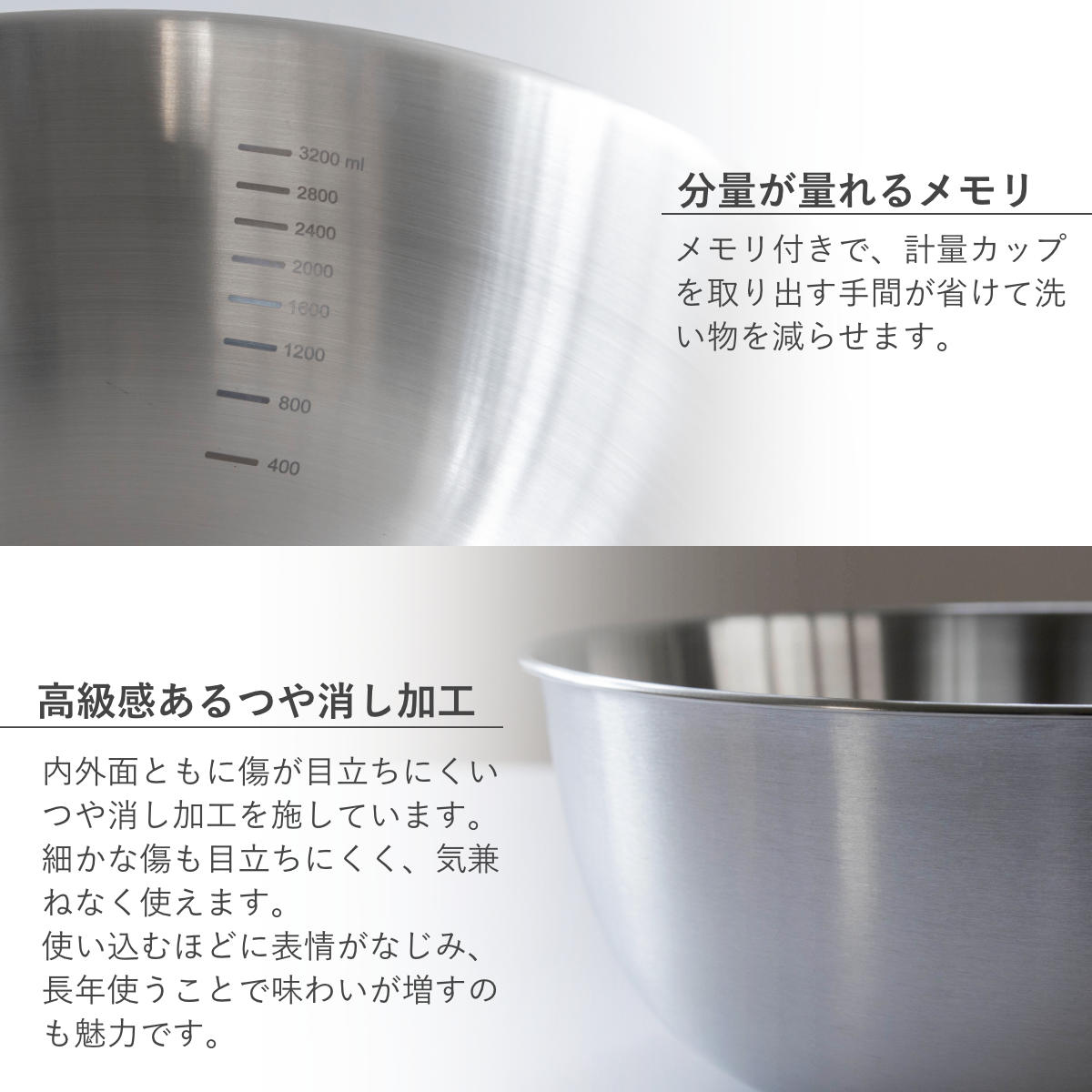 関連キーワード:調理ボウル 目盛り付き キッチンツール 調理器具 製菓道具 調理道具 調理小物 ステンレス食器 ステンレス製ボール ステンレス製ボウル つや消し ツヤ消し つや消しステンレス 下ごしらえ お菓子作り キッチン雑貨 キッチン小物 キッチンアイテム キッチングッズ 台所用品 お洒落 おしゃれ オシャレ シンプル スタイリッシュ シルバー おすすめ オススメ 使いやすい こだわり 丈夫 さびに強い サビに強い 錆びに強い お手入れカンタン お手入れ簡単 お手入れかんたん 便利 役立つ 新生活 新生活準備