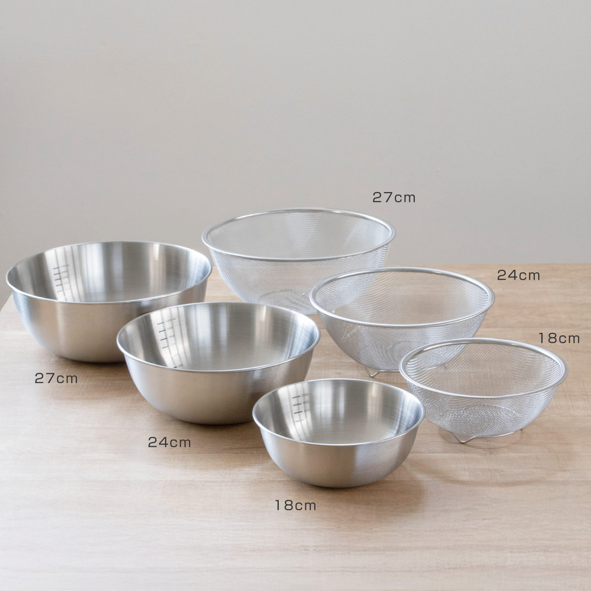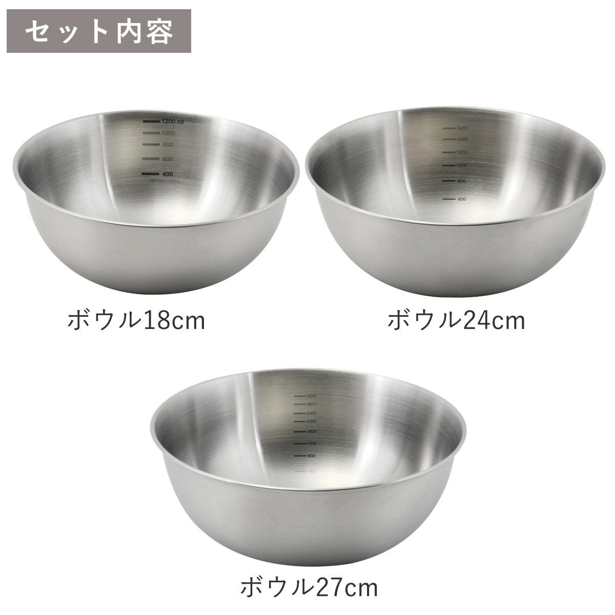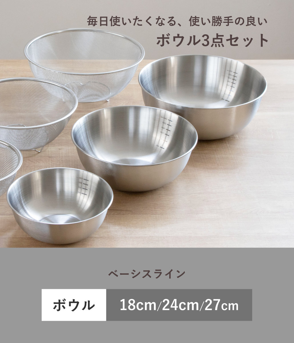 ボウル 3点セット 18cm 24cm 27cm ステンレス製 ベーシスライン ( ボール ステンレス ステンレスボウル 調理用ボール 18センチ 24センチ 27センチ 浅型 キッチンボウル 調理用ボウル 調理ボール 3個セット )