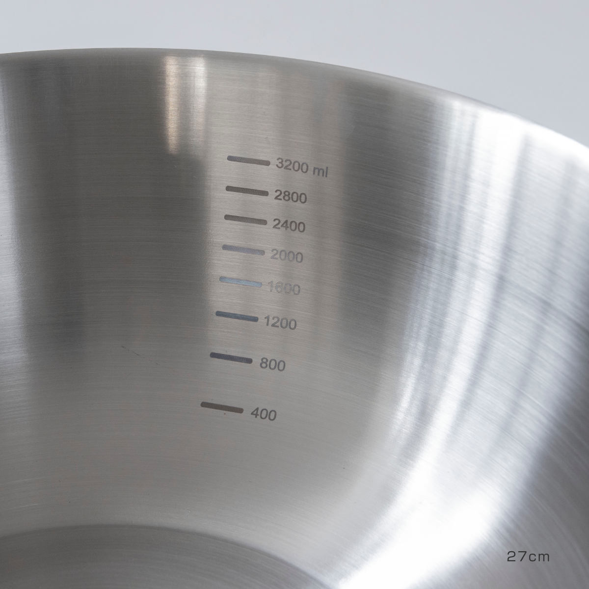 | サイズ | 【18cm】 約 高さ7.5(cm) 直径:約 19(cm) 板厚:約 0.5mm 【24cm】 約 高さ9.5(cm) 直径:約 25(cm) 板厚:約 0.5mm 【27cm】 約 高さ10.5(cm) 直径:約 28(cm) 板厚:約 0.5mm |