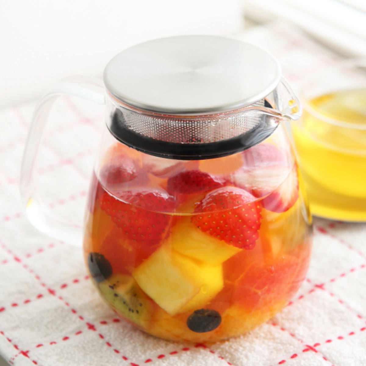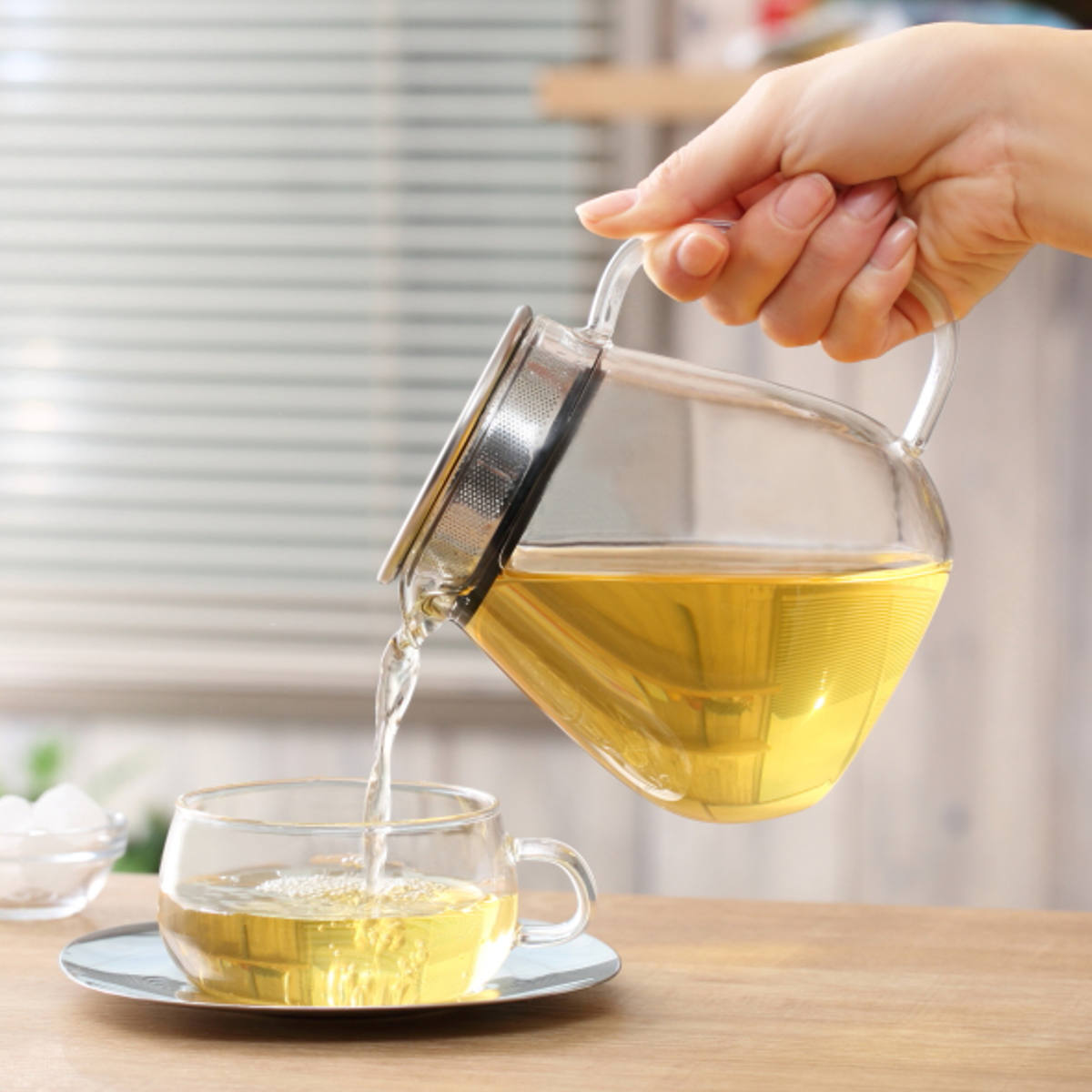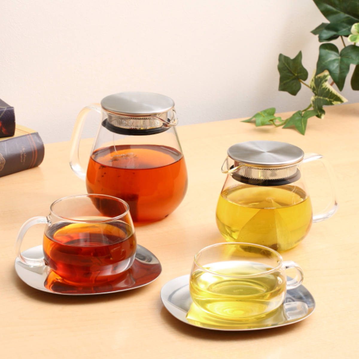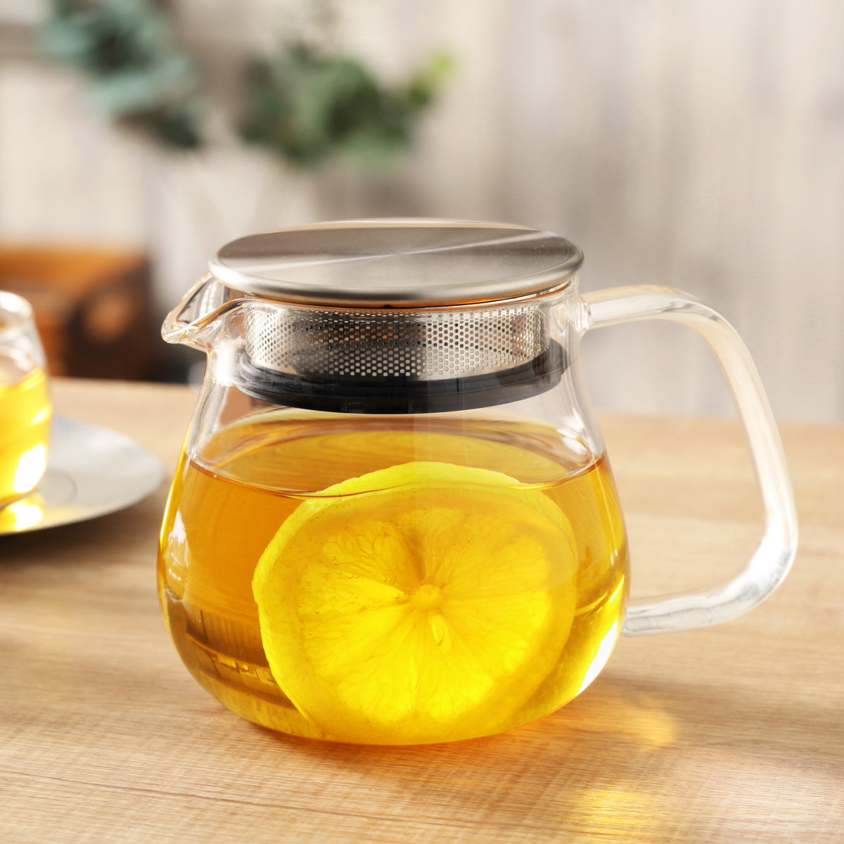 ポット本体がガラス製なので、茶葉が開く様子やドリンクの色をじっくりと眺めて愉しめます。紅茶やハーブティー、レモンティーや日本茶など、様々なドリンクに合わせやすいデザインです。