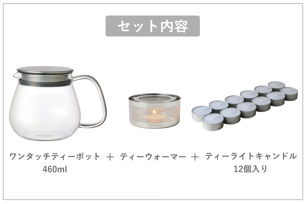 ![]() ワンタッチティーポット 460ml | ![]() ティーウォーマー | ![]() ティーライトキャンドル |