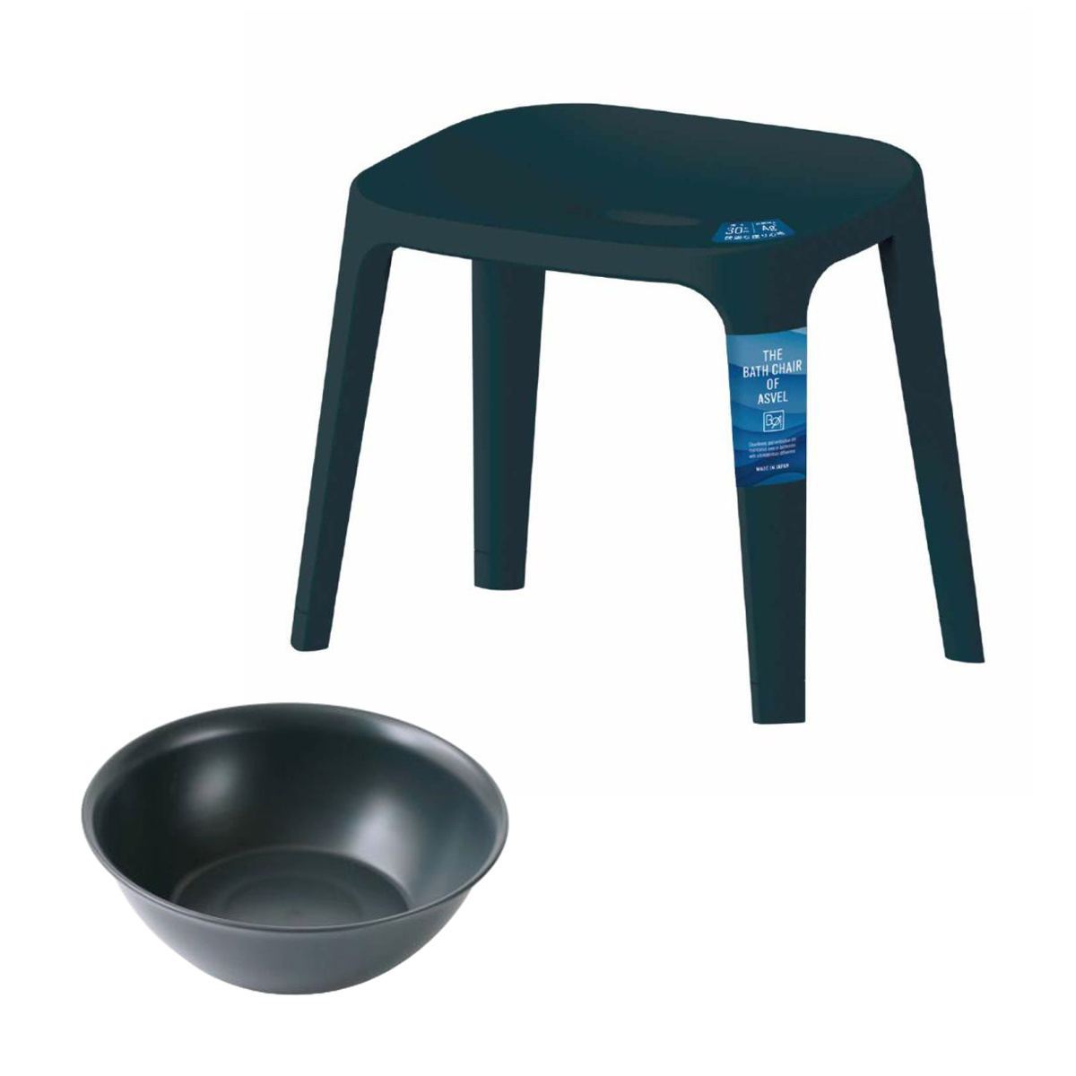 風呂椅子 座面高30cm 湯桶 2点セット バスチェアEX ( 風呂いす バスチェア お風呂 腰掛け 座面高30 風呂桶 湯おけ 風呂イス 椅子 4本脚 高さ30cm すべり止め ブラック ホワイト ベージュ グレー ) 【ブラック】