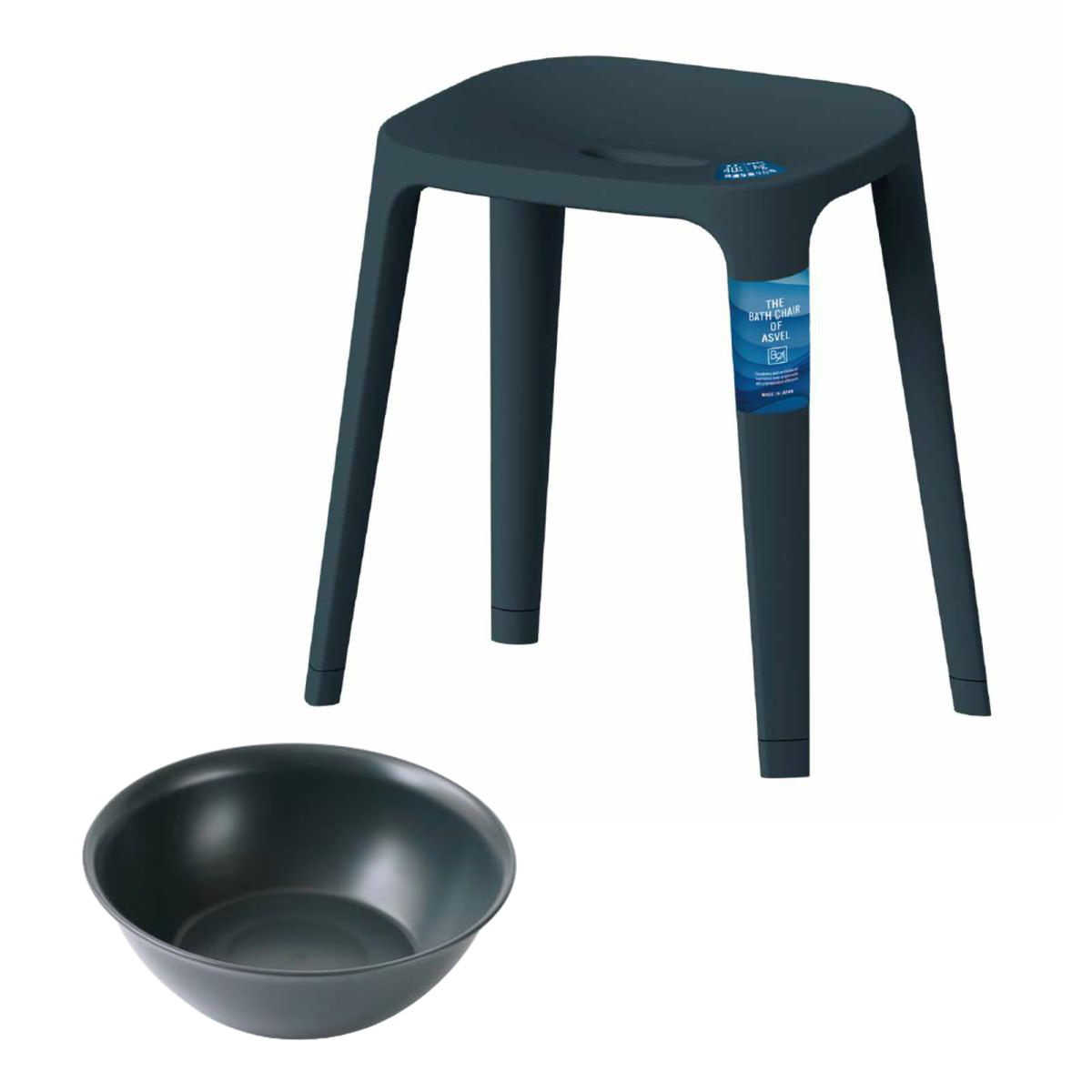 風呂椅子 座面高40cm 湯桶 2点セット バスチェアEX ( 風呂いす バスチェア お風呂 腰掛け 座面高40 風呂桶 湯おけ 風呂イス 椅子 4本脚 高さ40cm すべり止め ブラック ホワイト ベージュ グレー ) 【ブラック】