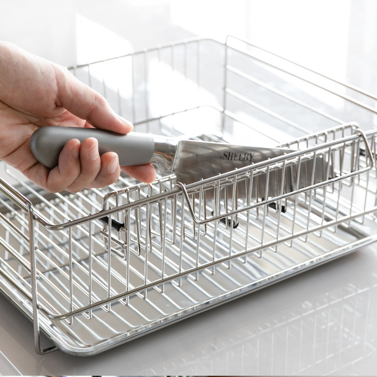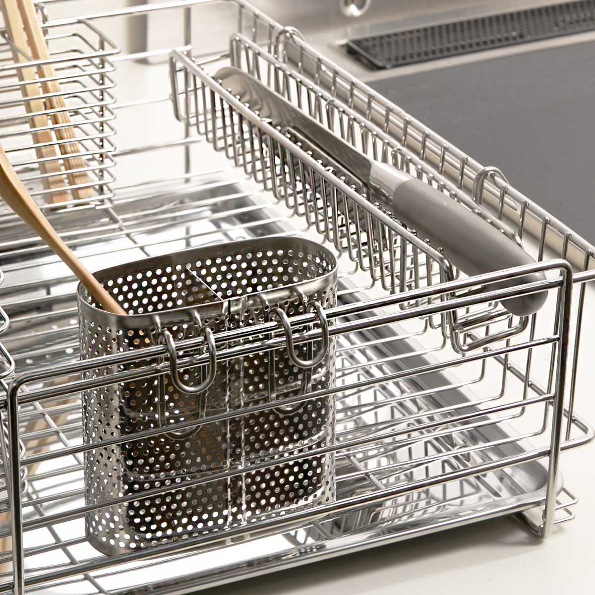 関連キーワード:ディッシュラック カトラリー立て ツールポケット ナイフスタンド 包丁ケース 洗い物 食器洗い 乾燥 シンク回り シンク周り シンク横 食器立て キッチン収納 キッチン雑貨 キッチン用品 台所用品 キッチングッズ 水回り用品 水まわり用品 水周り用品 便利 役立つ おすすめ オススメ 水受けトレー ディッシュスタンド シンプル スタイリッシュ シルバー 頑丈 丈夫