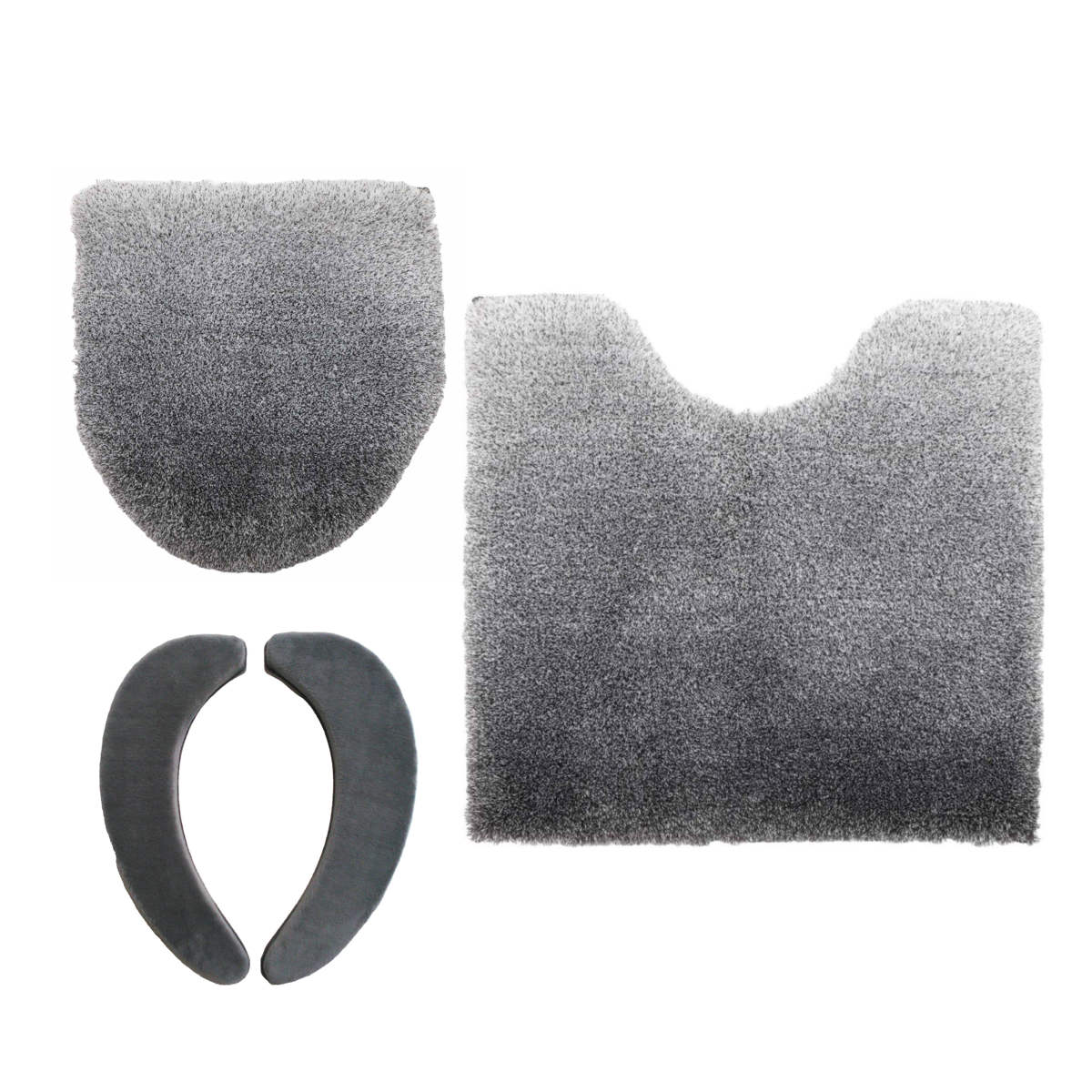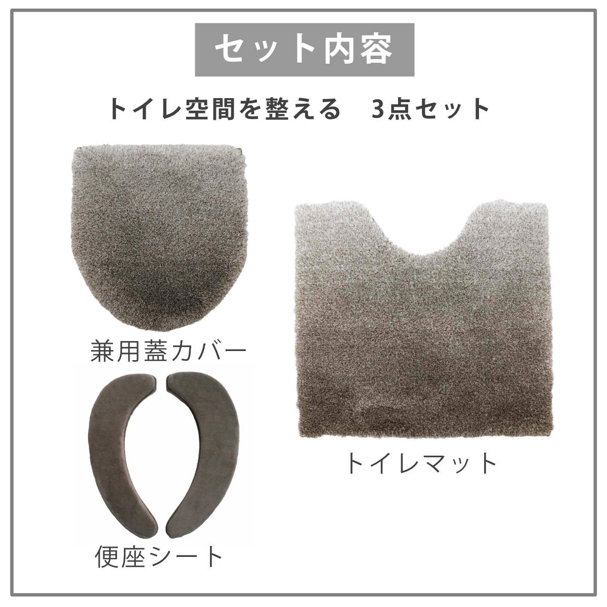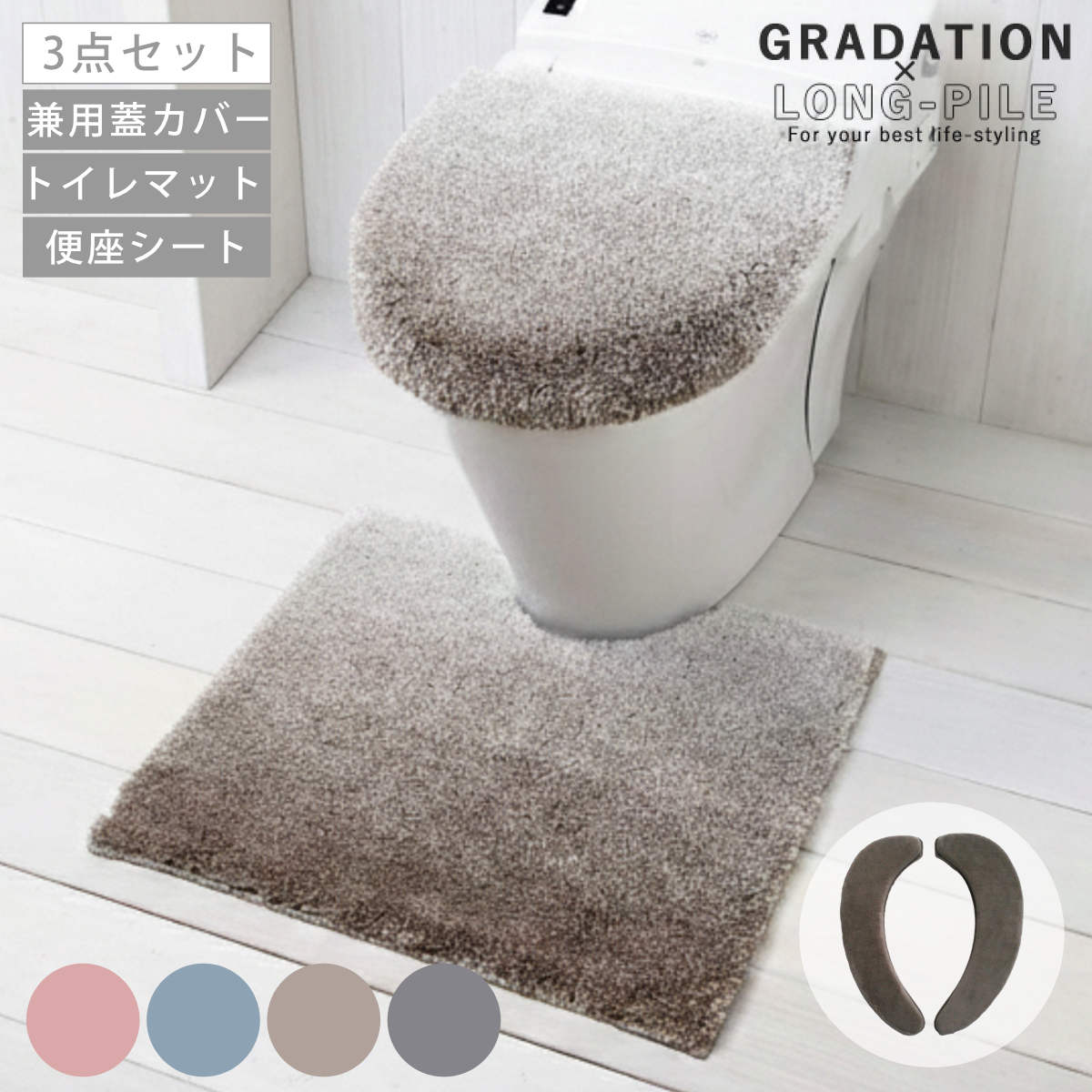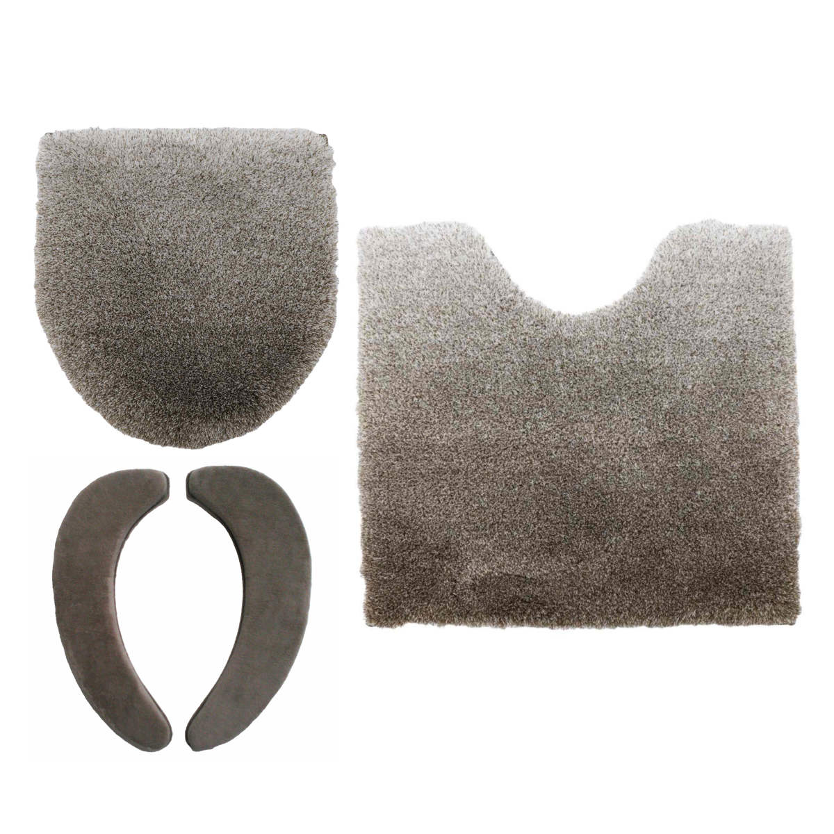 トイレセット 3点セット トイレマット 55×60cm 蓋カバー 兼用タイプ 便座シート 吸着タイプ グラデ ( マット ふたカバートイレ 足元 便座 クッション トイレタリー U型 O型 洗浄暖房 滑り止め加工 ) 【スモークピンク】
