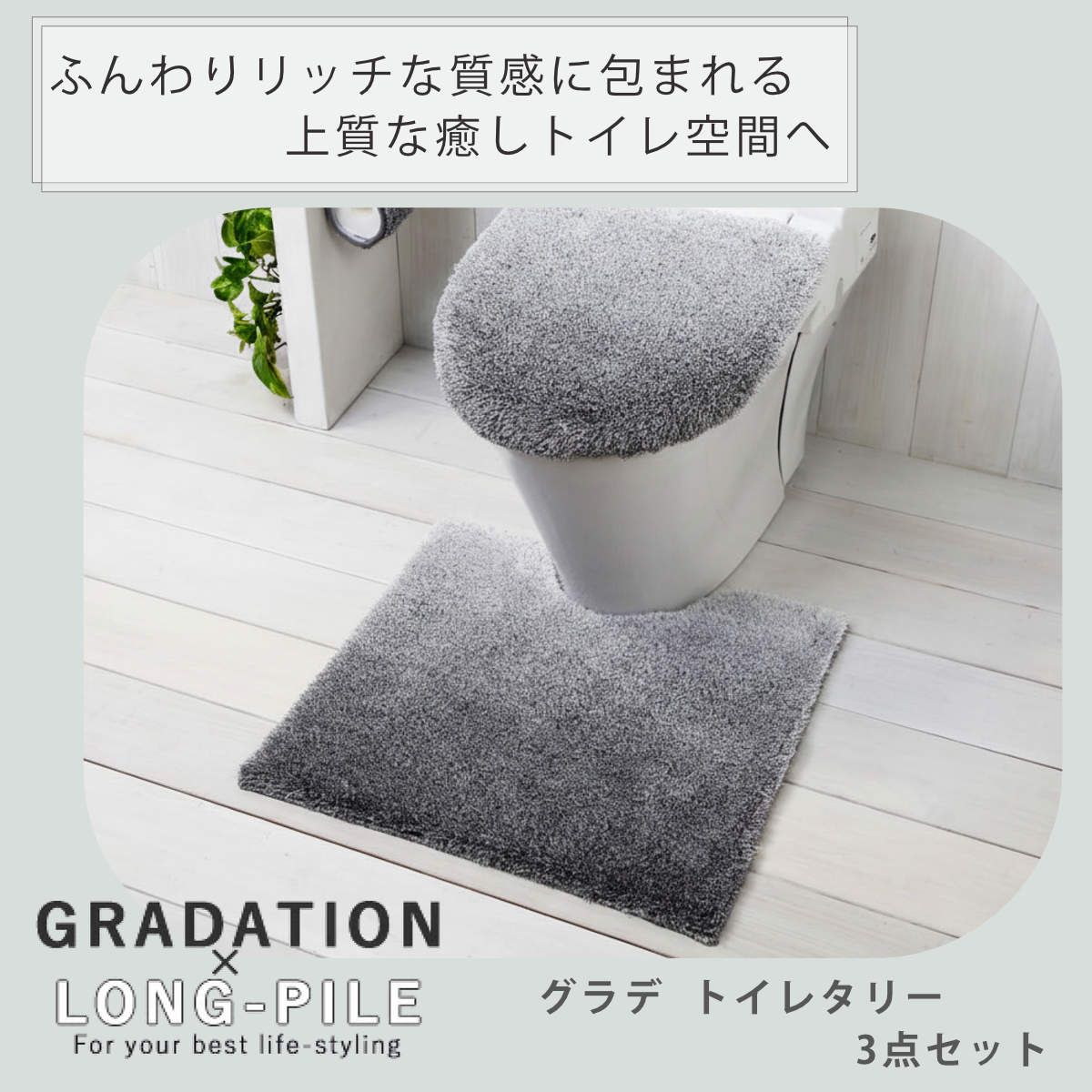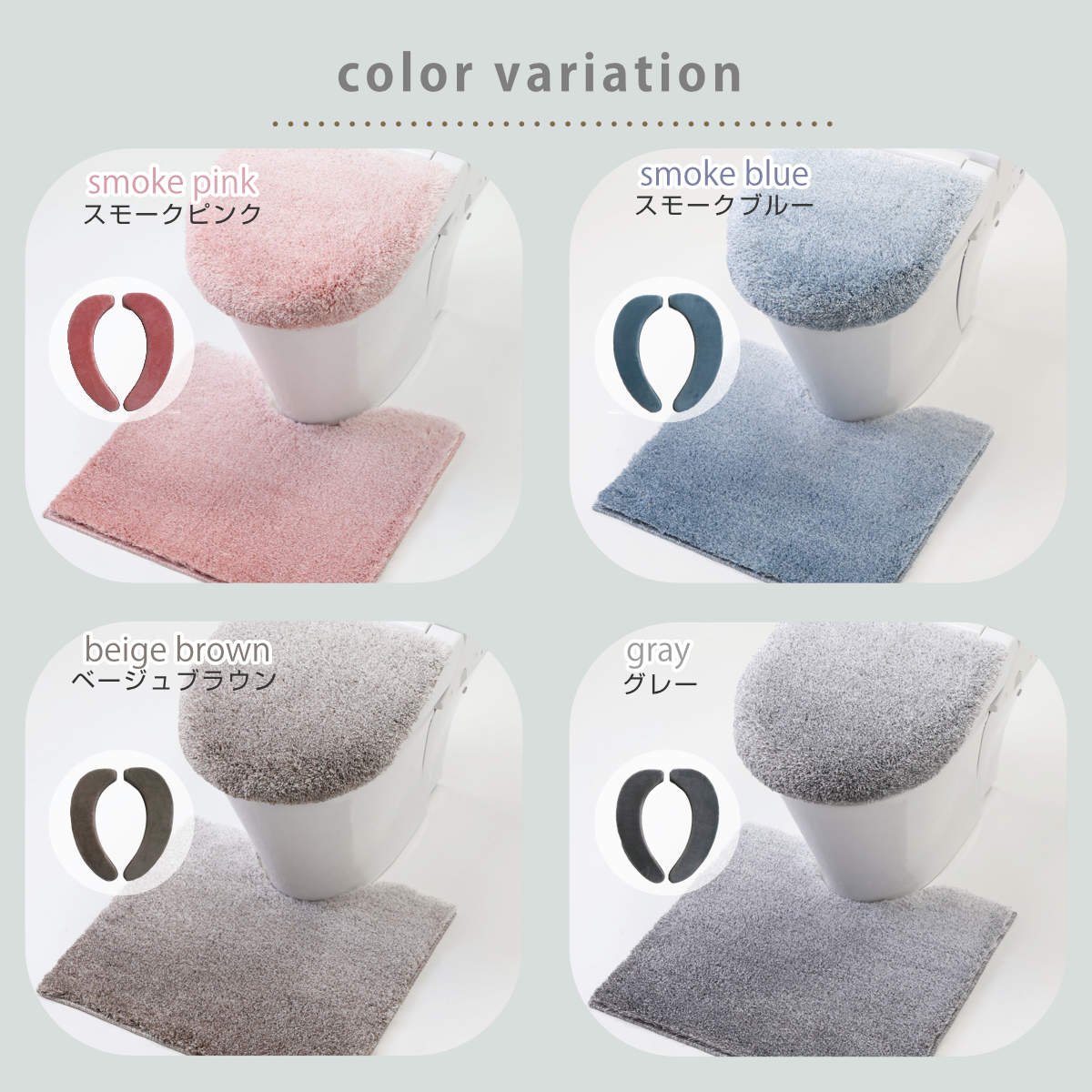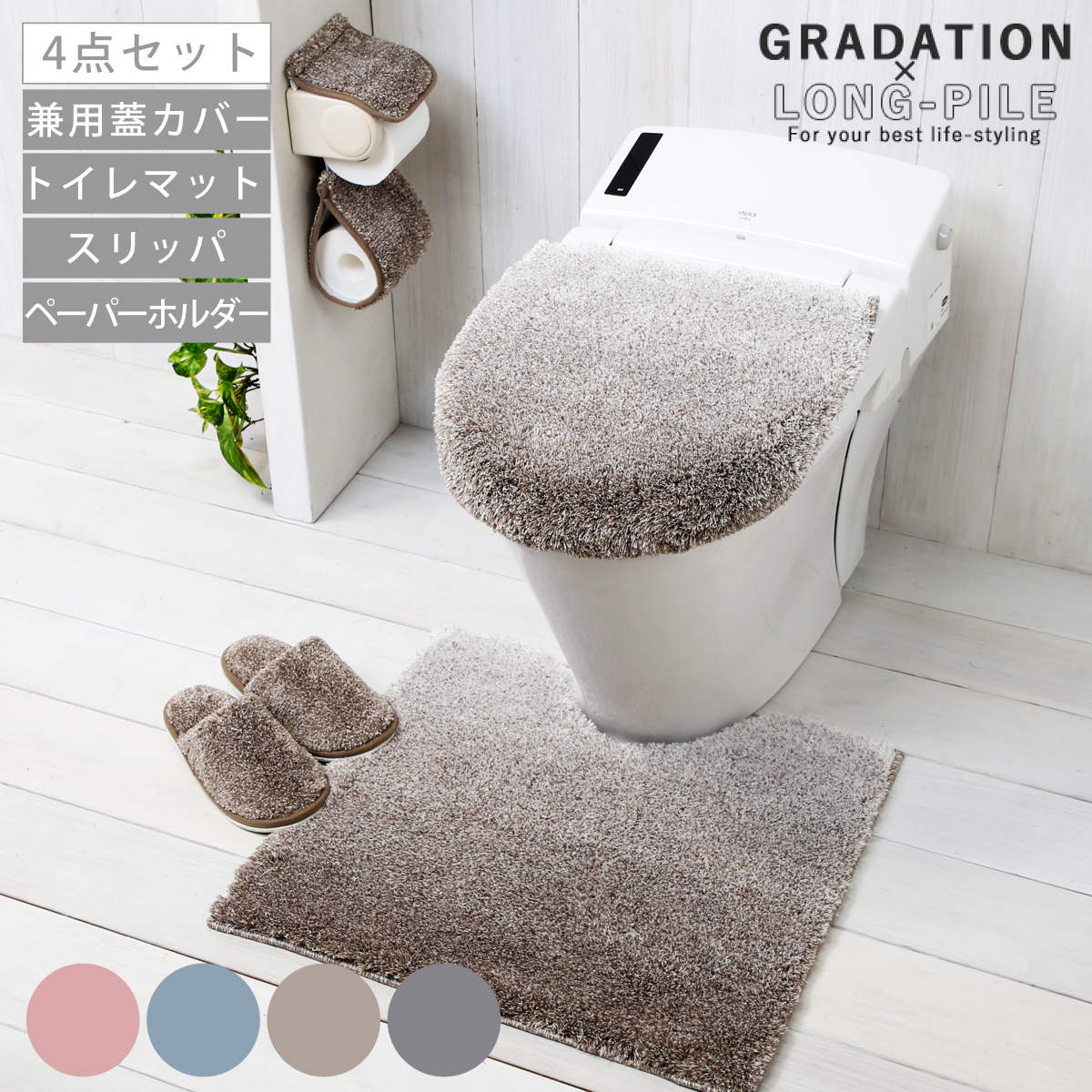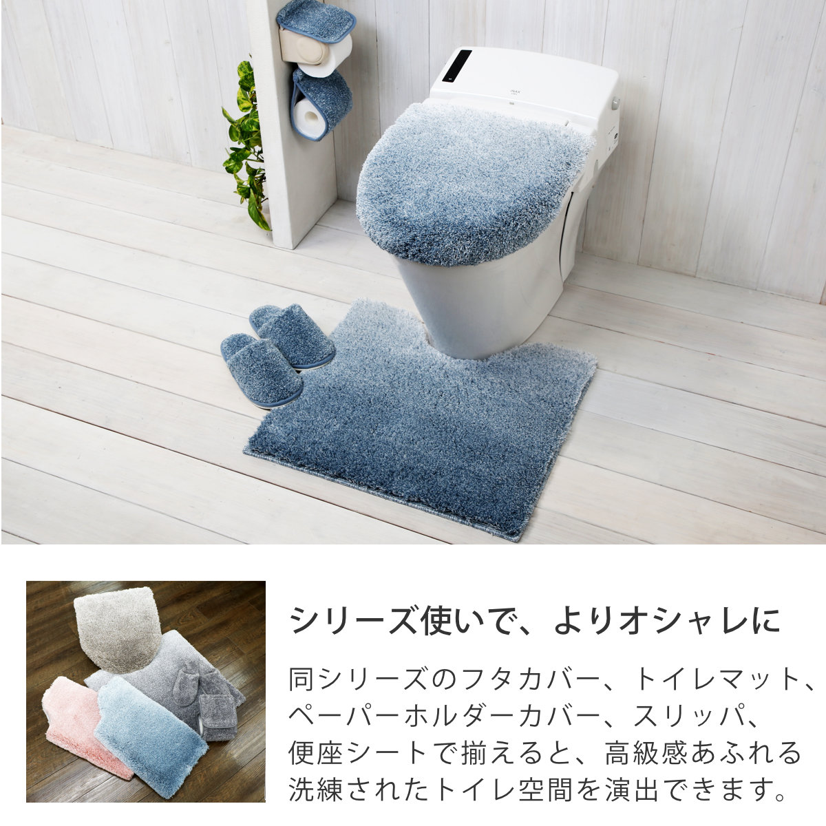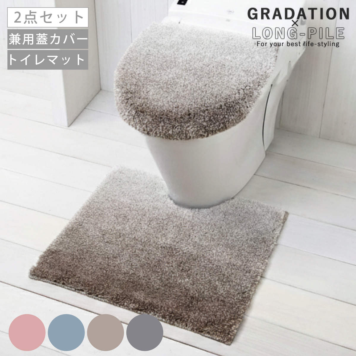 トイレセット 3点セット トイレマット 55×60cm 蓋カバー 兼用タイプ 便座シート 吸着タイプ グラデ ( マット ふたカバートイレ 足元 便座 クッション トイレタリー U型 O型 洗浄暖房 滑り止め加工 ) 【スモークピンク】