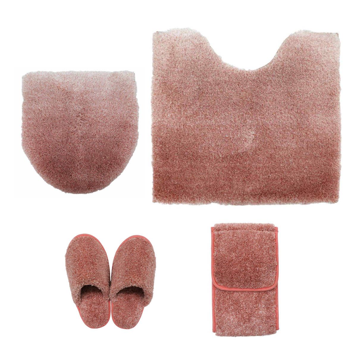 トイレセット 4点セット トイレマット 55×60cm 蓋カバー 兼用タイプ スリッパ ペーパーホルダーカバー グラデ ( マット カバー クッション トイレスリッパ トイレタリー 滑りにくい 洗濯OK U型 O型 洗浄暖房 滑り止め加工 ) 【スモークピンク】