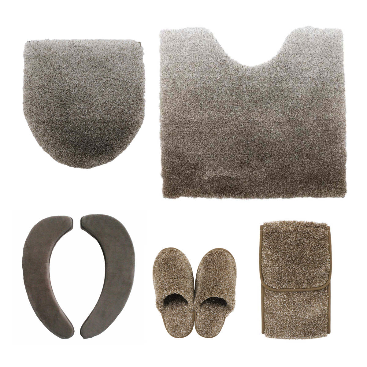 トイレセット 5点セット トイレマット 55×60cm 蓋カバー 兼用タイプ 便座シート 吸着タイプ スリッパ ペーパーホルダーカバー グラデ ( マット カバー トイレスリッパ ) 【ベージュブラウン】