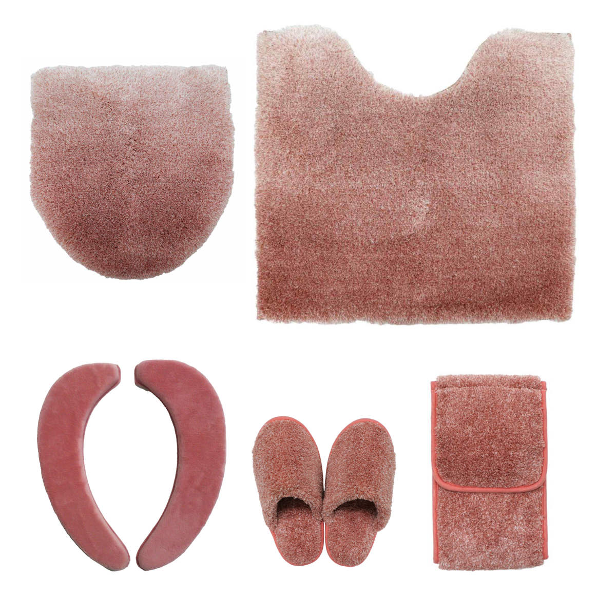 トイレセット 5点セット トイレマット 55×60cm 蓋カバー 兼用タイプ 便座シート 吸着タイプ スリッパ ペーパーホルダーカバー グラデ ( マット カバー トイレスリッパ ) 【スモークピンク】