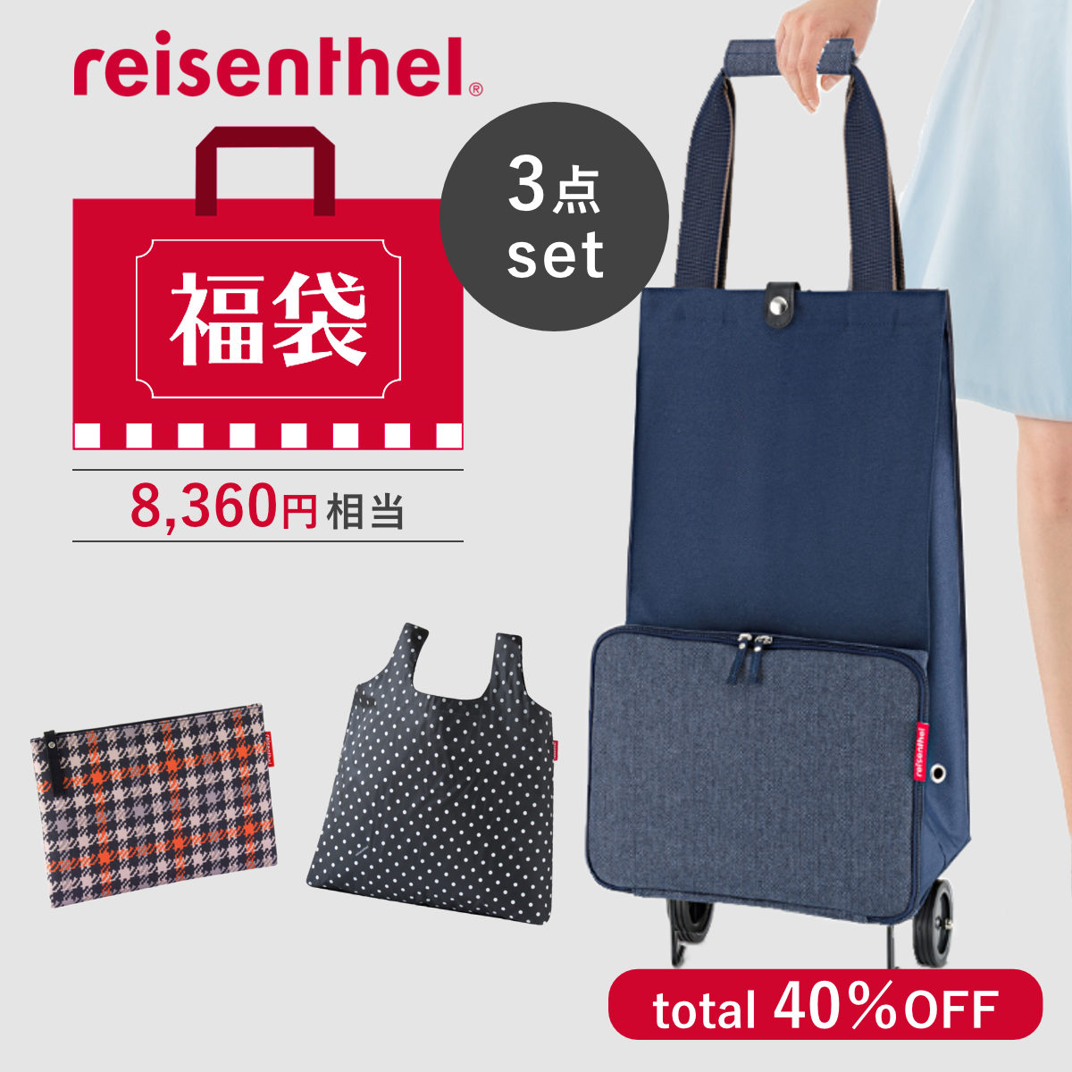 【福袋】ショッピングカート reisenthel お出かけ3点セット ( ライゼンタール 3点セット 買い物カート ポーチ エコバッグ レディース 折りたたみ 撥水加工 大容量 旅行 ショッピング レジャー トラベル用品 ) 【B】