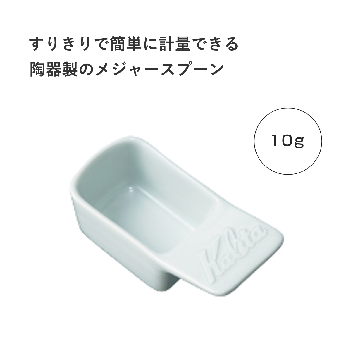 丁寧に仕上げた陶器製のコーヒー専用メジャースプーン。手に馴染む程よい重みでコーヒー1杯分(約10g)をすりきりで簡単に計量できます。清潔感のある白一色のデザインが毎日のコーヒータイムをさりげなく彩ります。