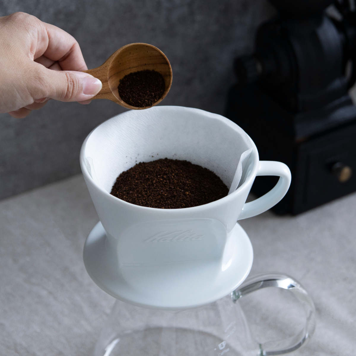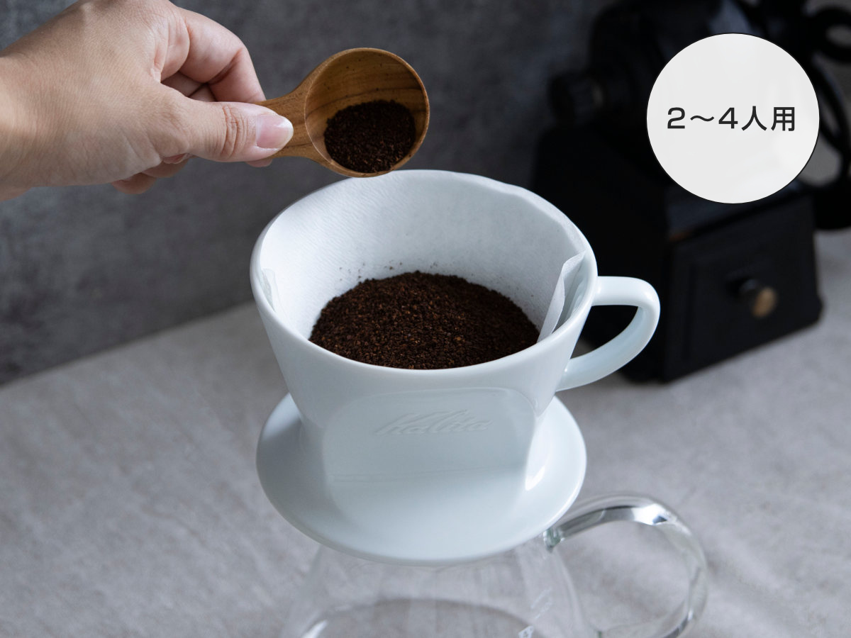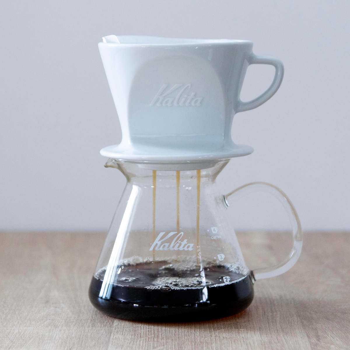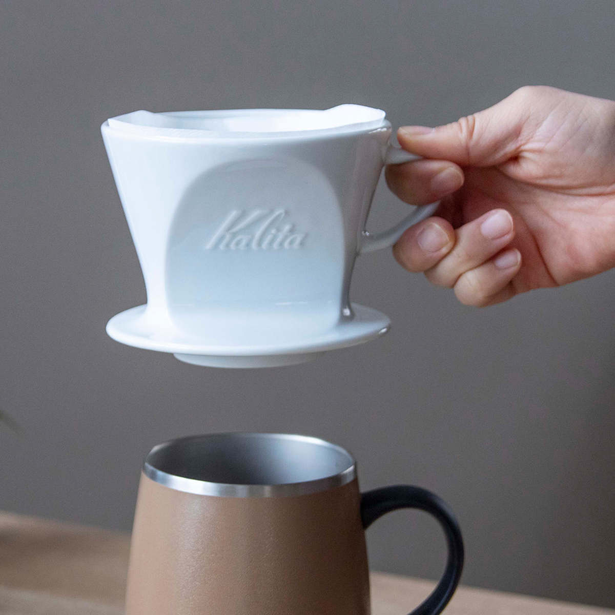 抽き出したコーヒーをドリッパー内にためずに、自然に滴下させるカリタ独自の三つ穴構造のドリッパー。雑味が出る前に美味しさだけをドリップできます。