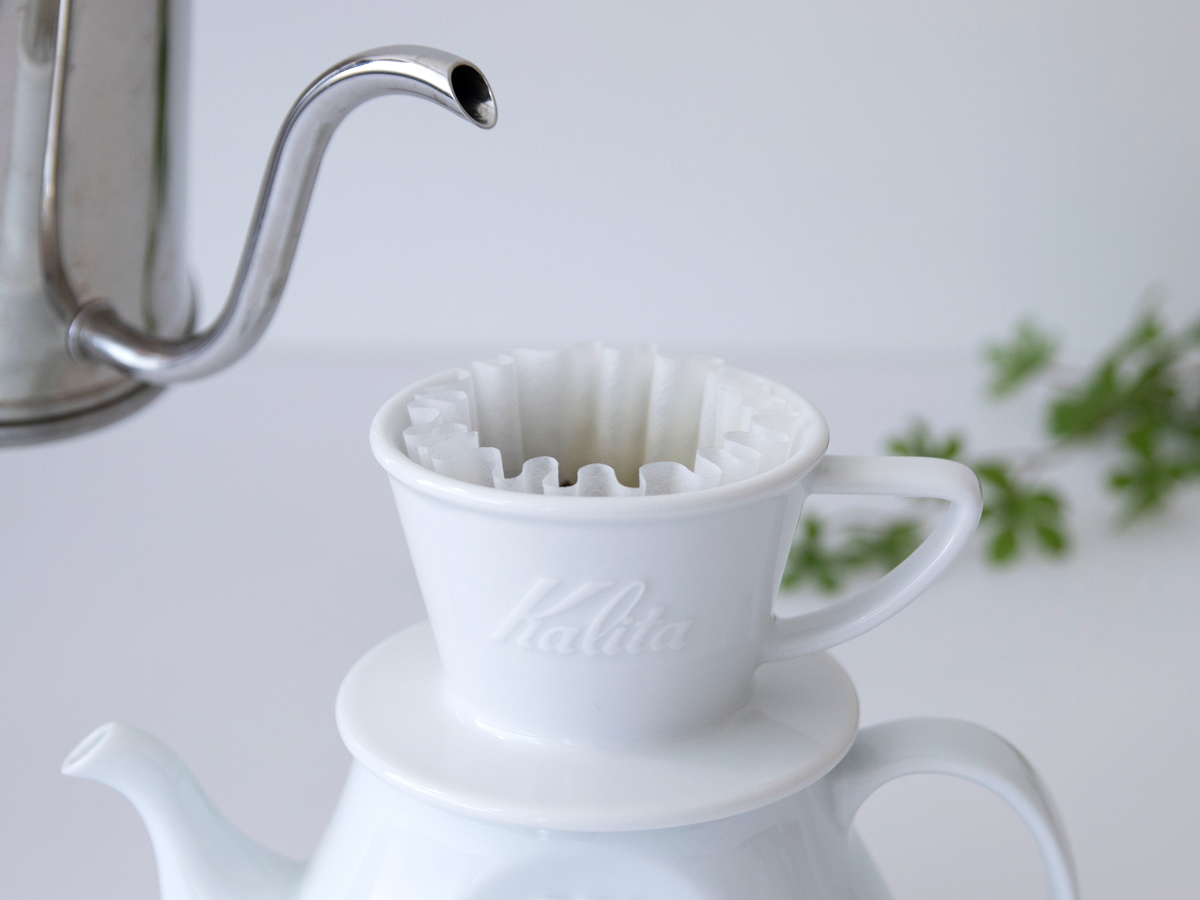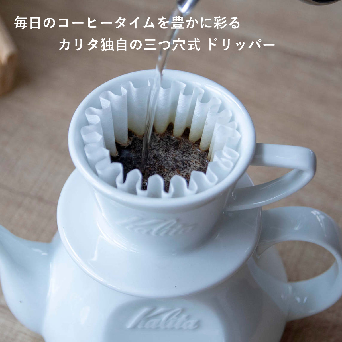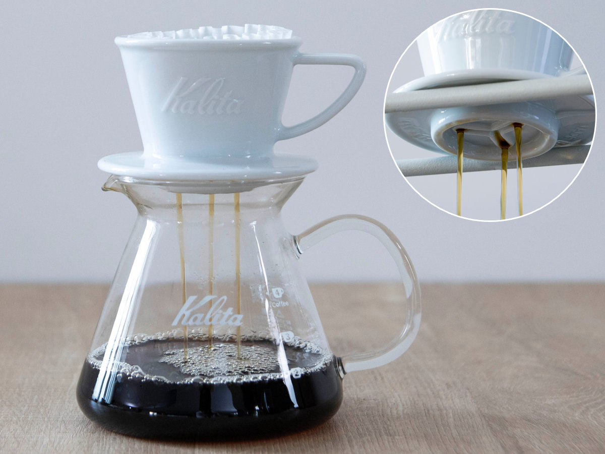抽き出したコーヒーをドリッパー内にためずに、自然に滴下させるカリタ独自の三つ穴構造のドリッパー。雑味が出る前に美味しさだけをドリップできます。