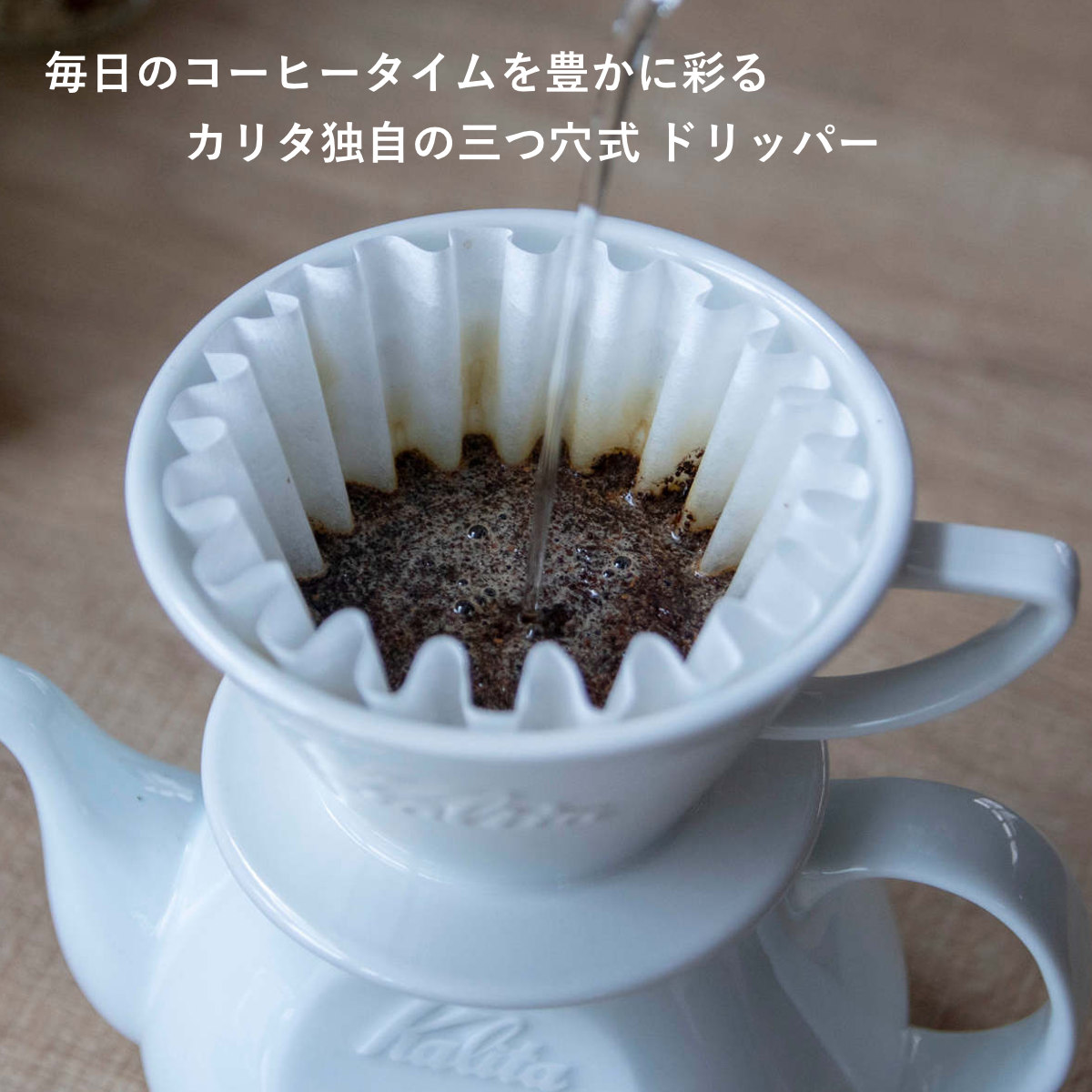 抽き出したコーヒーをドリッパー内にためずに、自然に滴下させるカリタ独自の三つ穴構造のドリッパー。雑味が出る前に美味しさだけをドリップできます。