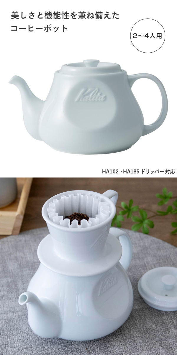 HA102・HA185(2~4人用)に対応したコーヒーポットです。陶器ならではの高い保温性と注ぎやすいデザインで、ドリップコーヒーをより美味しくいただけます。