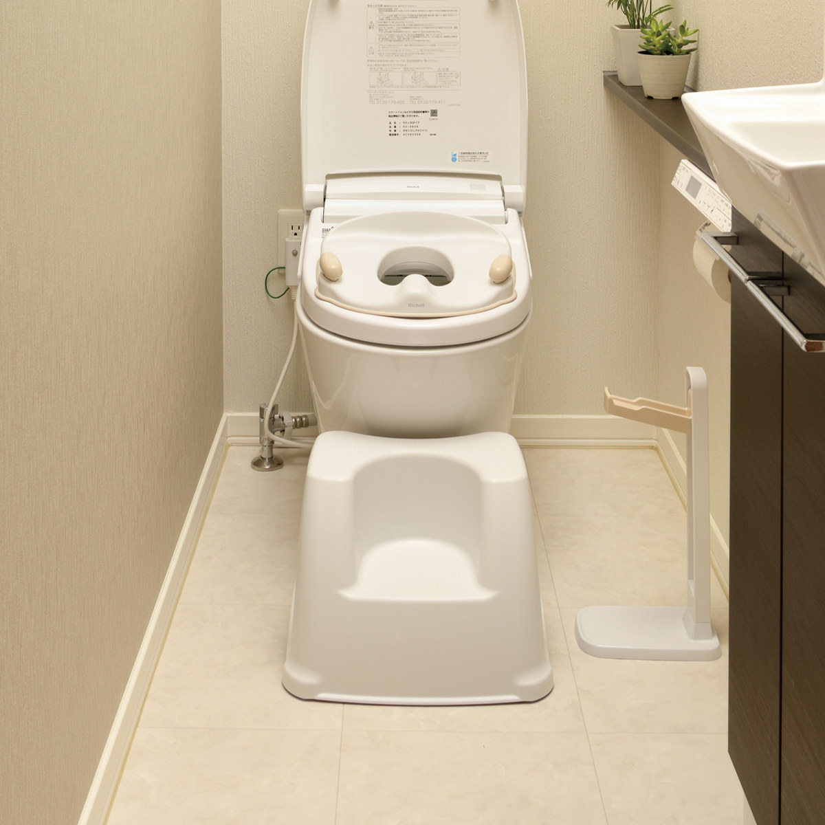 | 材質 | 【補助便座】 本体:ポリプロピレン、熱可塑性エラストマー キャップ、固定具:ポリプロピレン グリップ:ABS樹脂 【スタンド】 本体:台座、フレーム:ABS樹脂 フック:ポリプロピレン ゴム脚:ポリウレタン 【サポートステップ】 本体:ポリプロピレン ゴム脚:ポリエチレン |