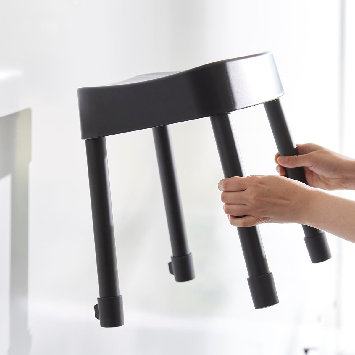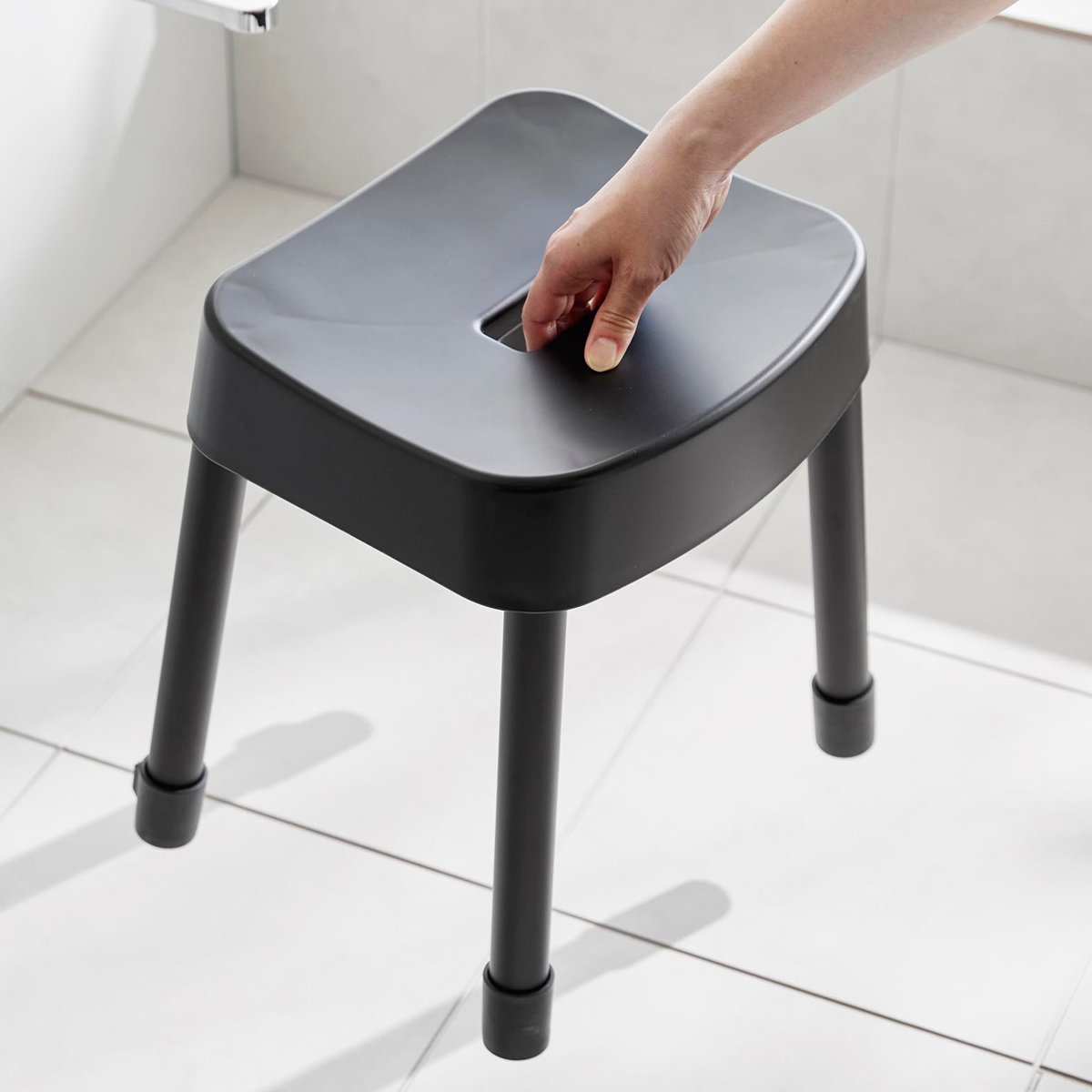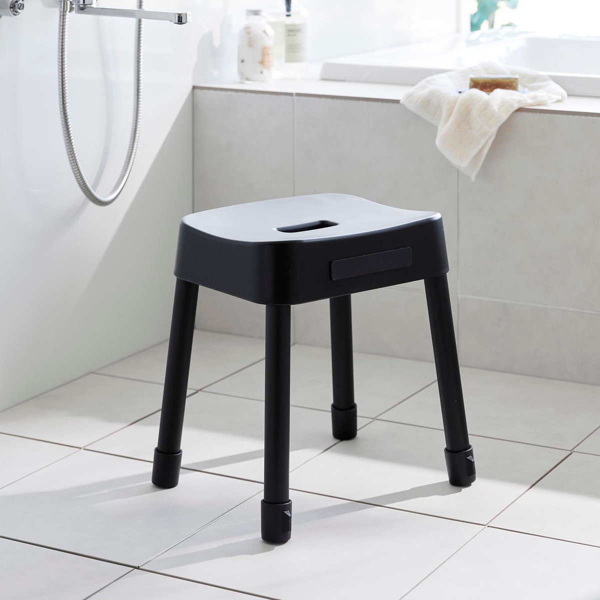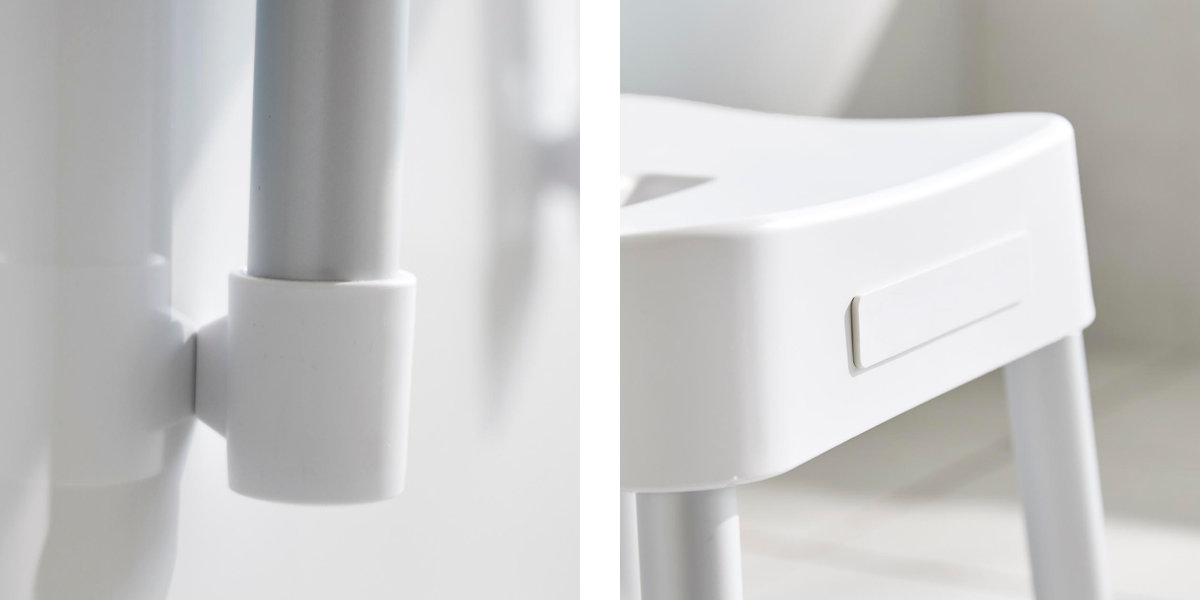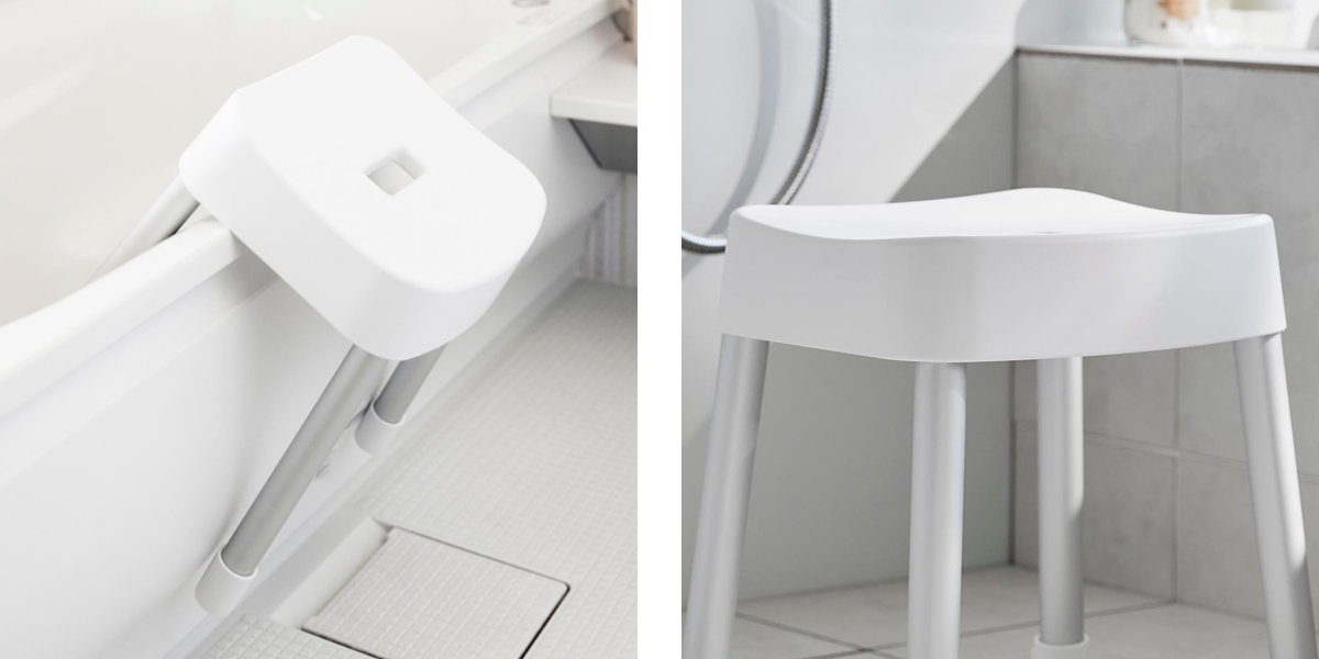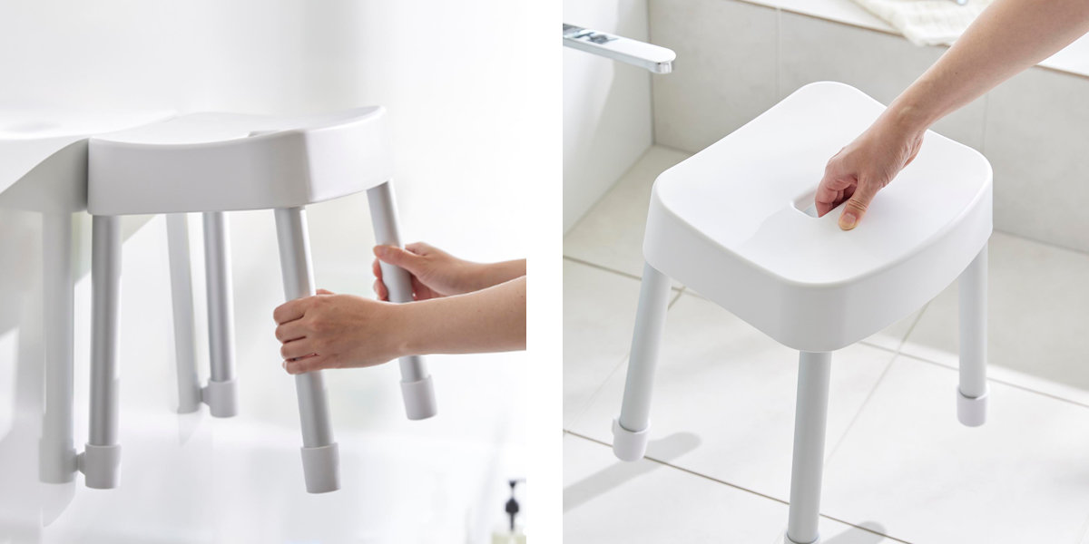 | 引っ掛け収納も可能 マグネットが使えない浴室でも、バスタブの縁に掛ければ直接床に置かずに乾かせるので衛生的です。 | やさしくフィットする座り心地 座面の後方には、体に沿うようなカーブの背もたれが付いているので安定感のある座り心地です。 |