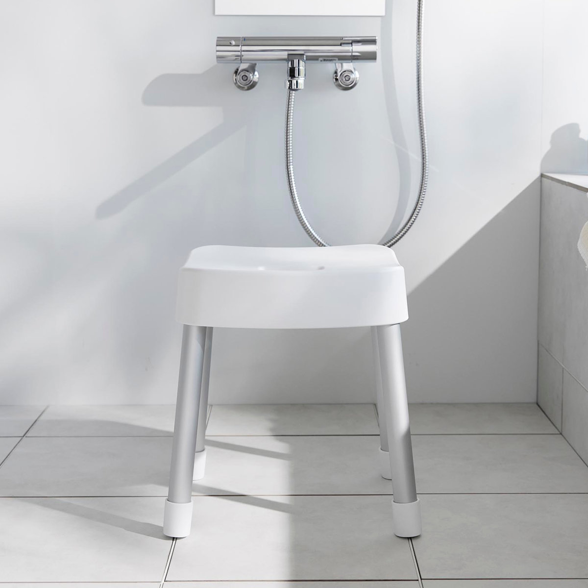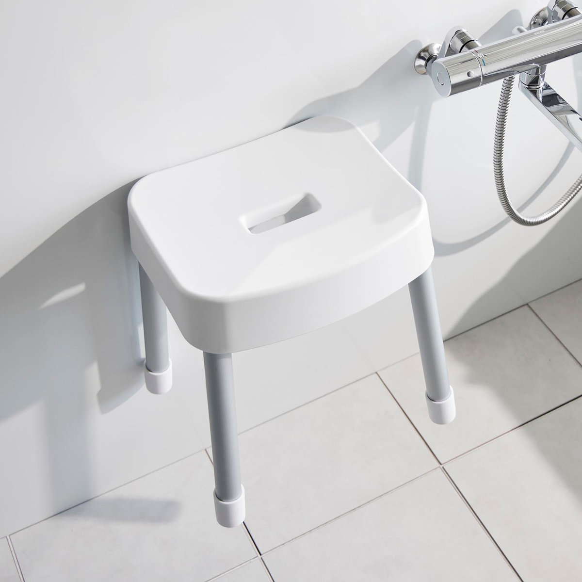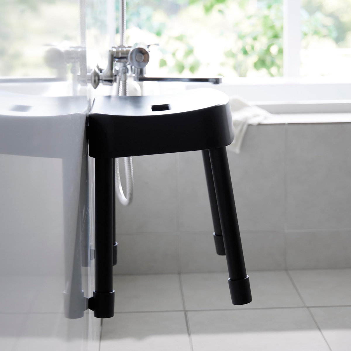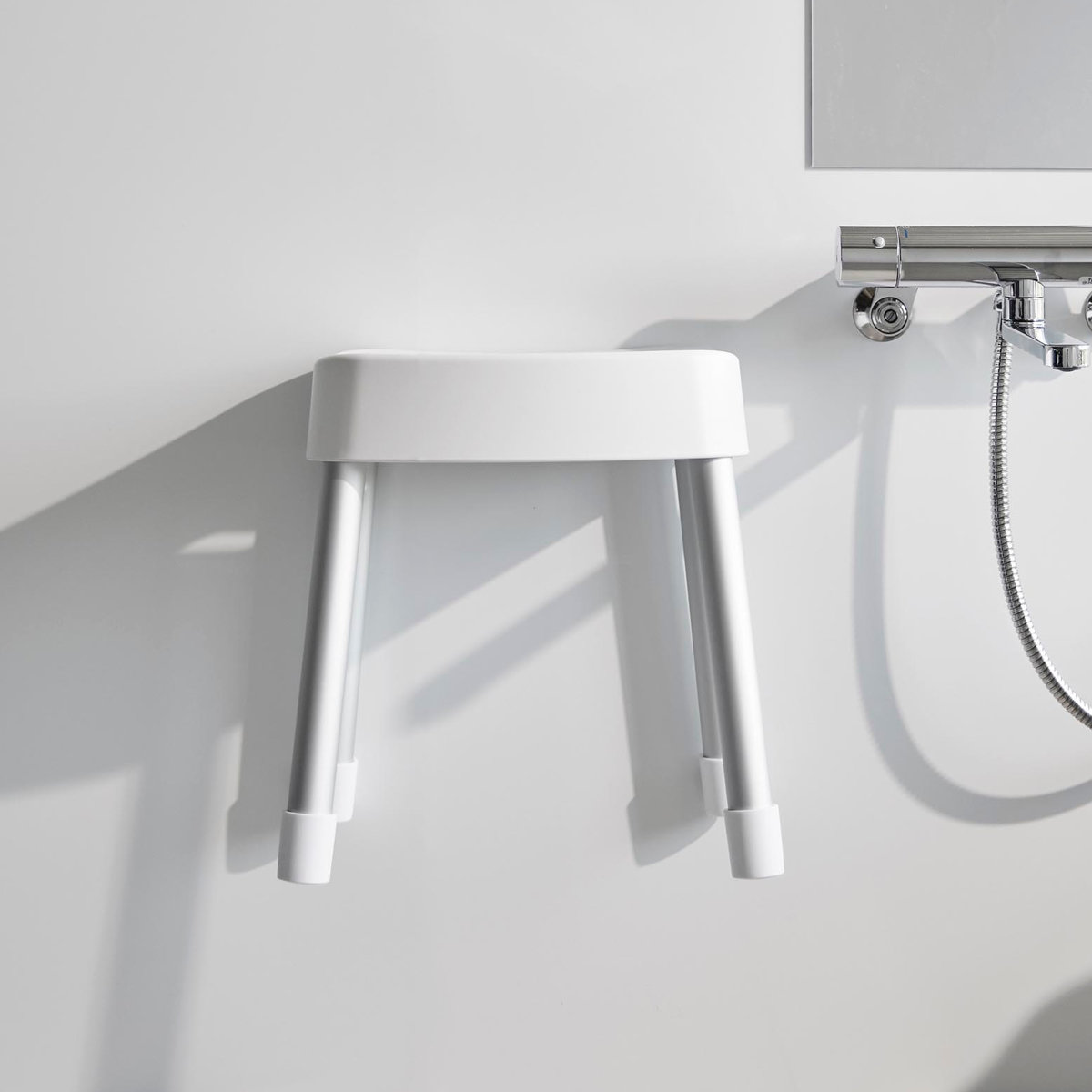 | 引っ掛け収納も可能 マグネットが使えない浴室でも、バスタブの縁に掛ければ直接床に置かずに乾かせるので衛生的です。 | やさしくフィットする座り心地 座面の後方には、体に沿うようなカーブの背もたれが付いているので安定感のある座り心地です。 |